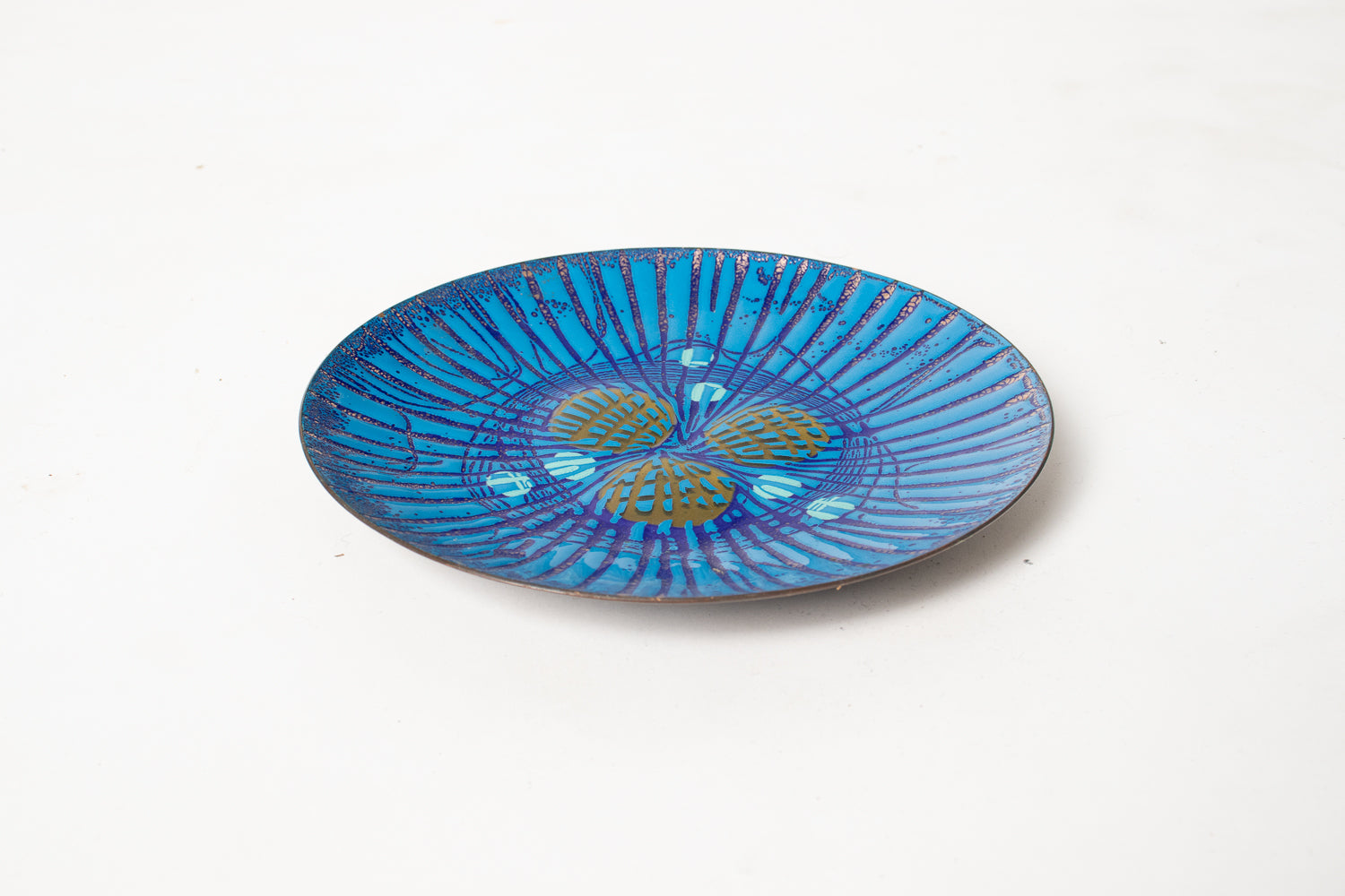 Rare Annemarie Davidson Enamel Catch-All Dish — “Blue Ghostline,” 1960s