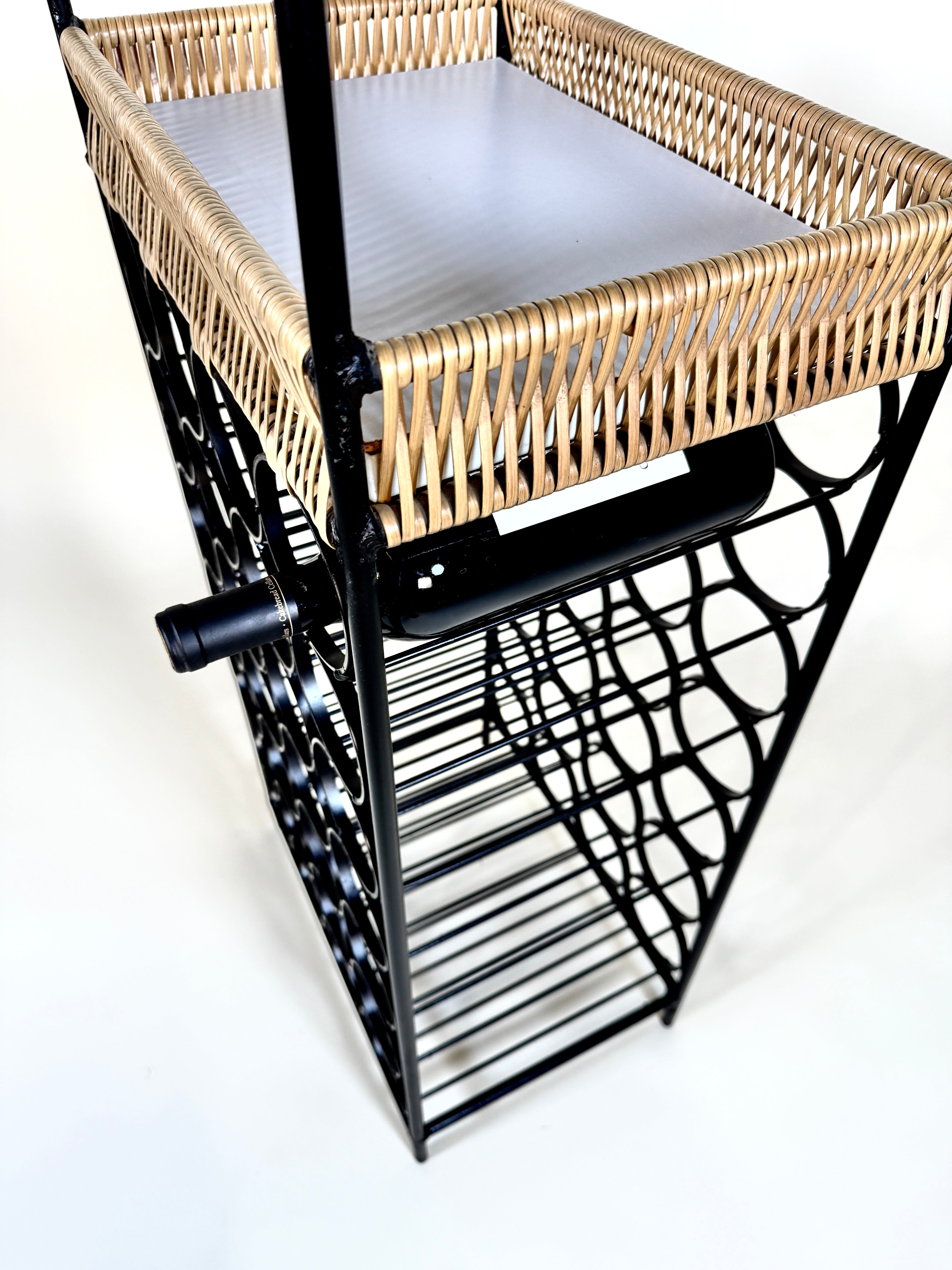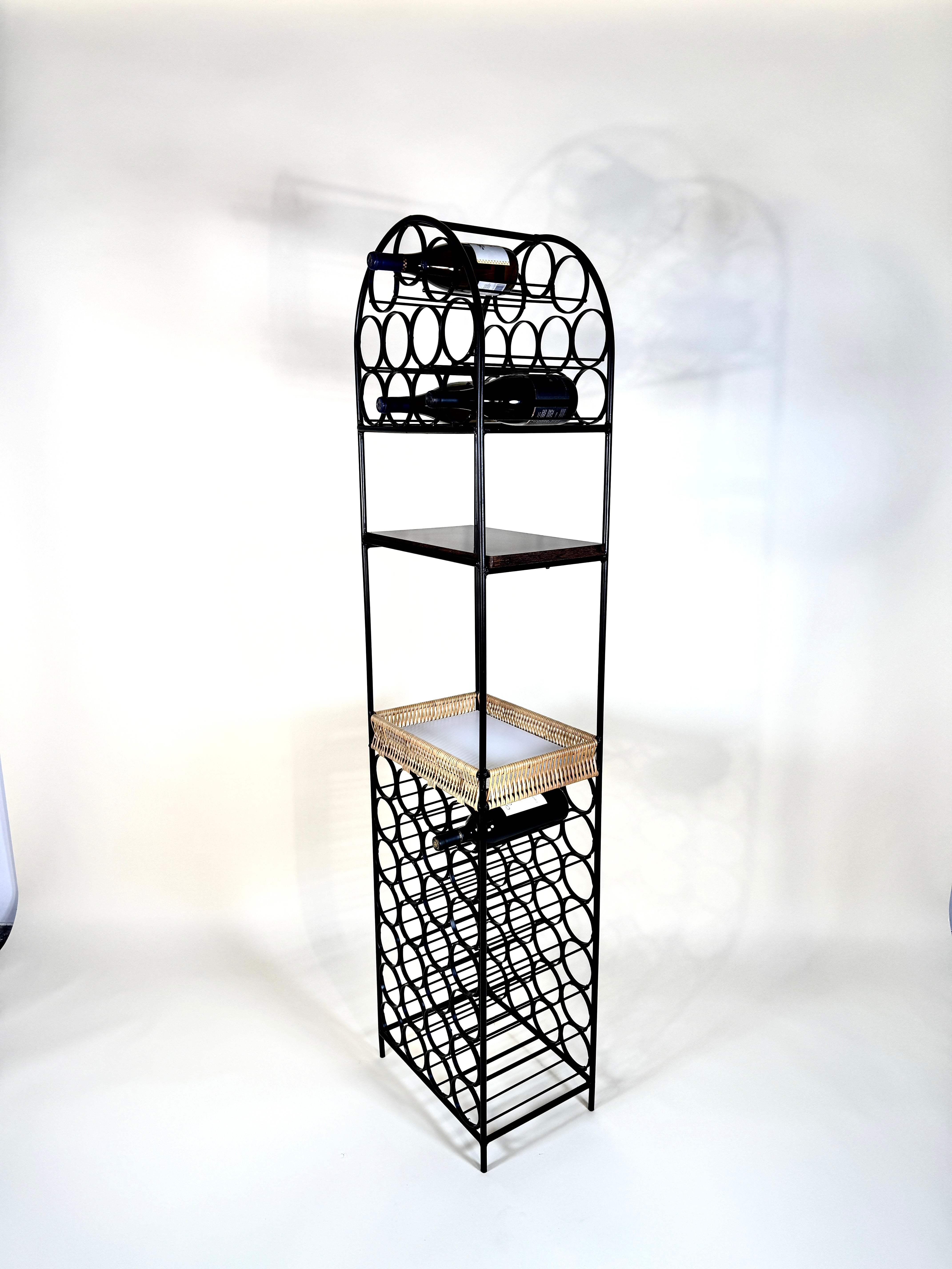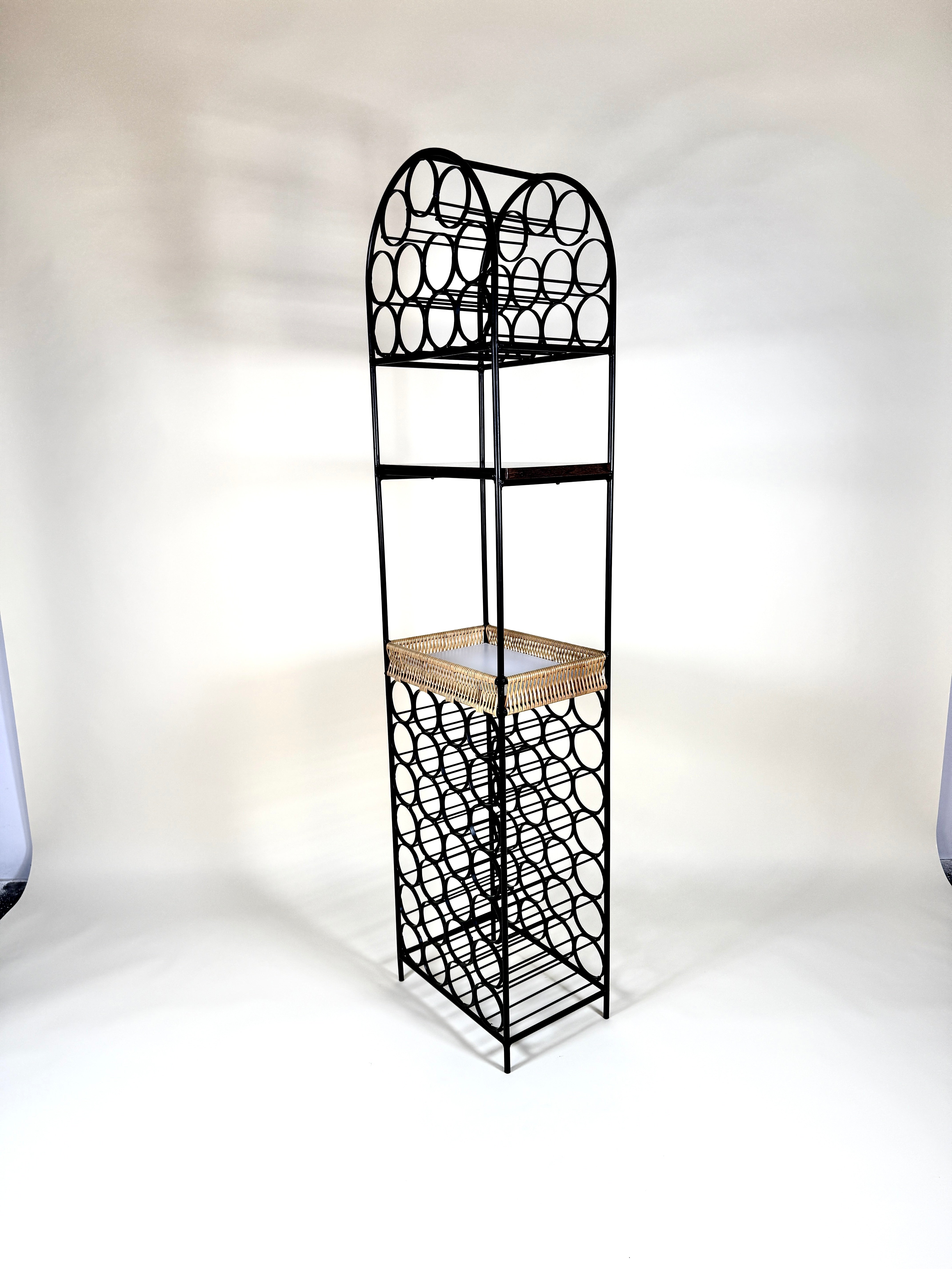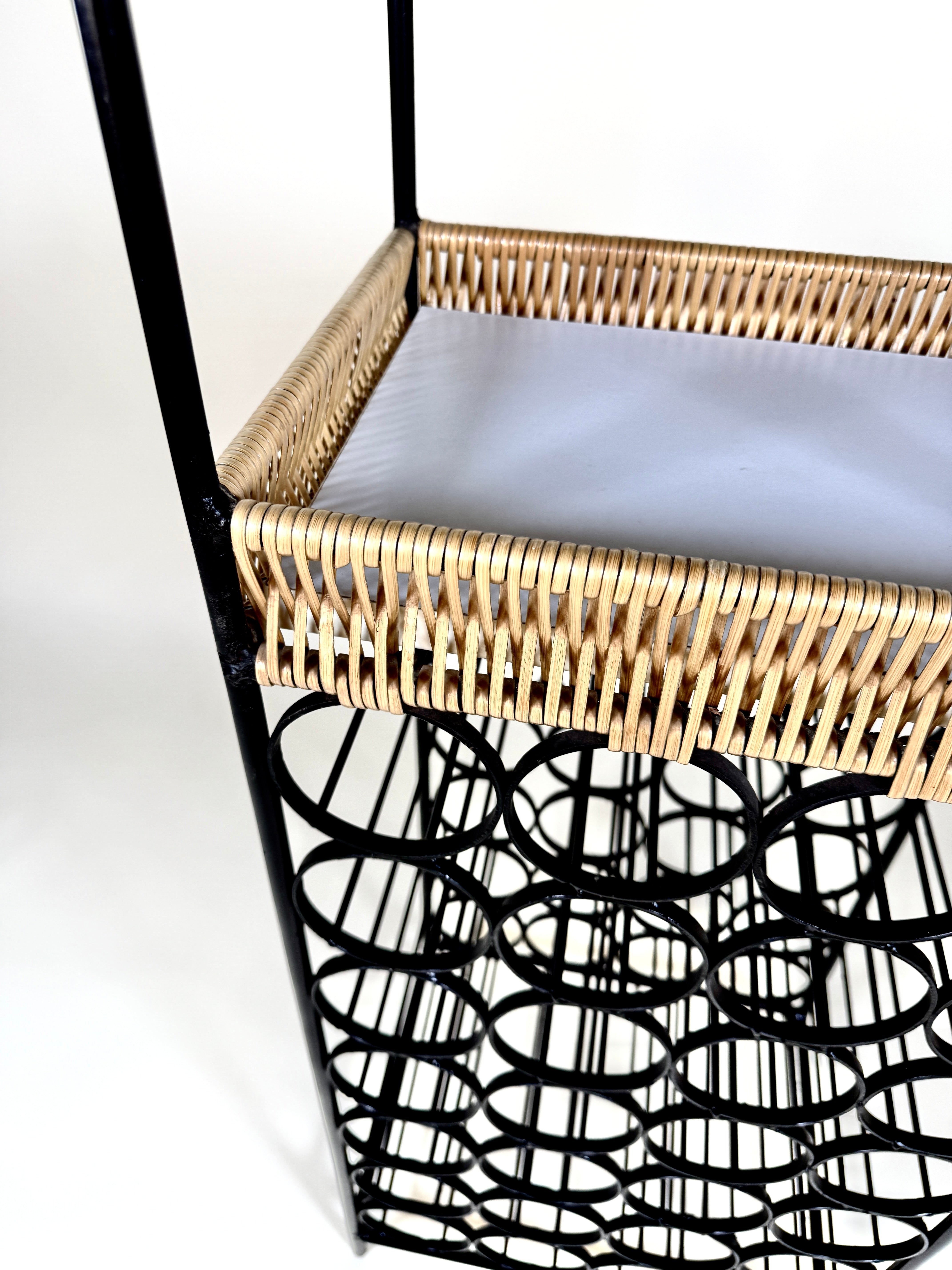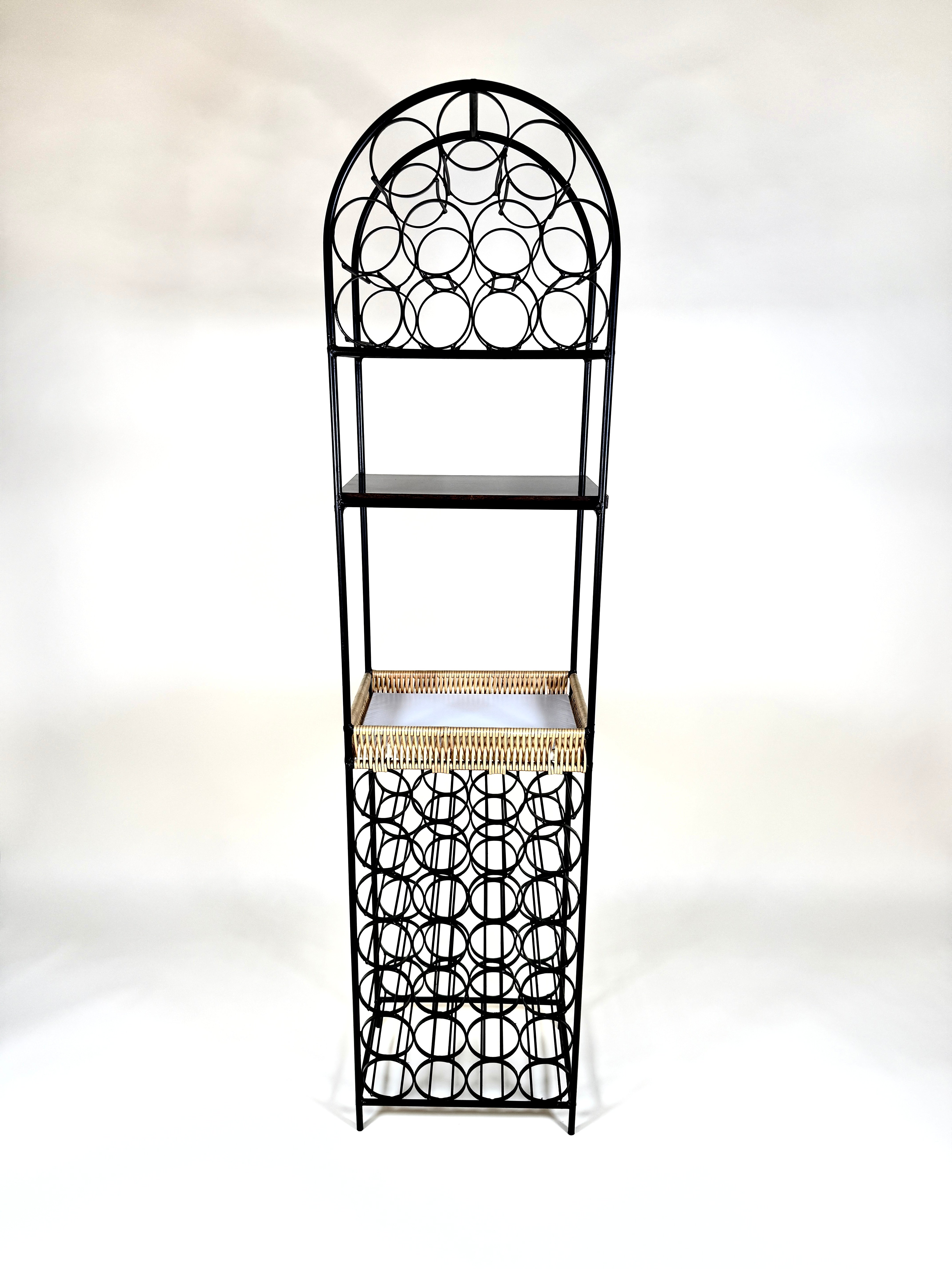 Arthur Umanoff Iron & Rattan Wine Rack with Shelves