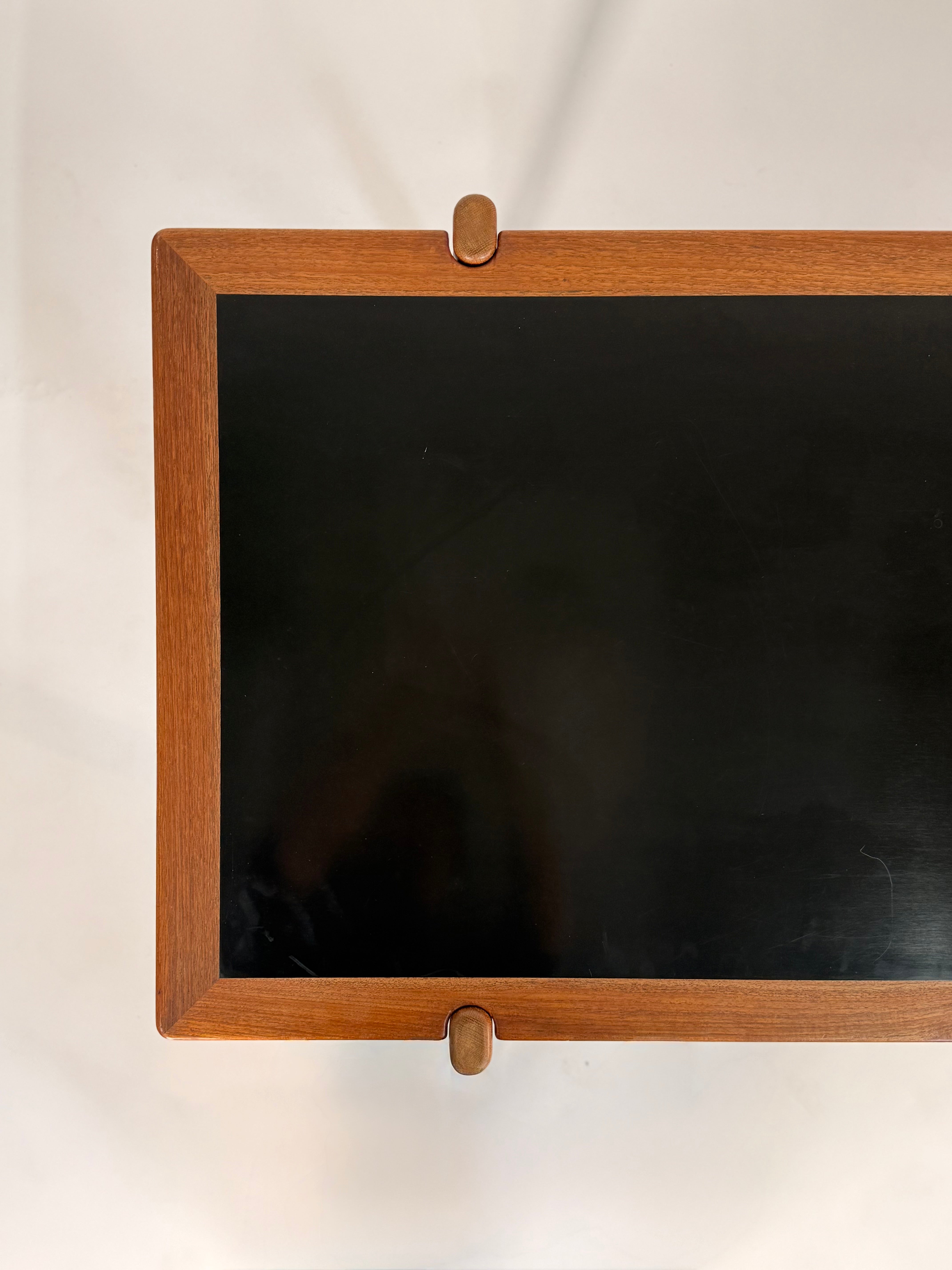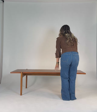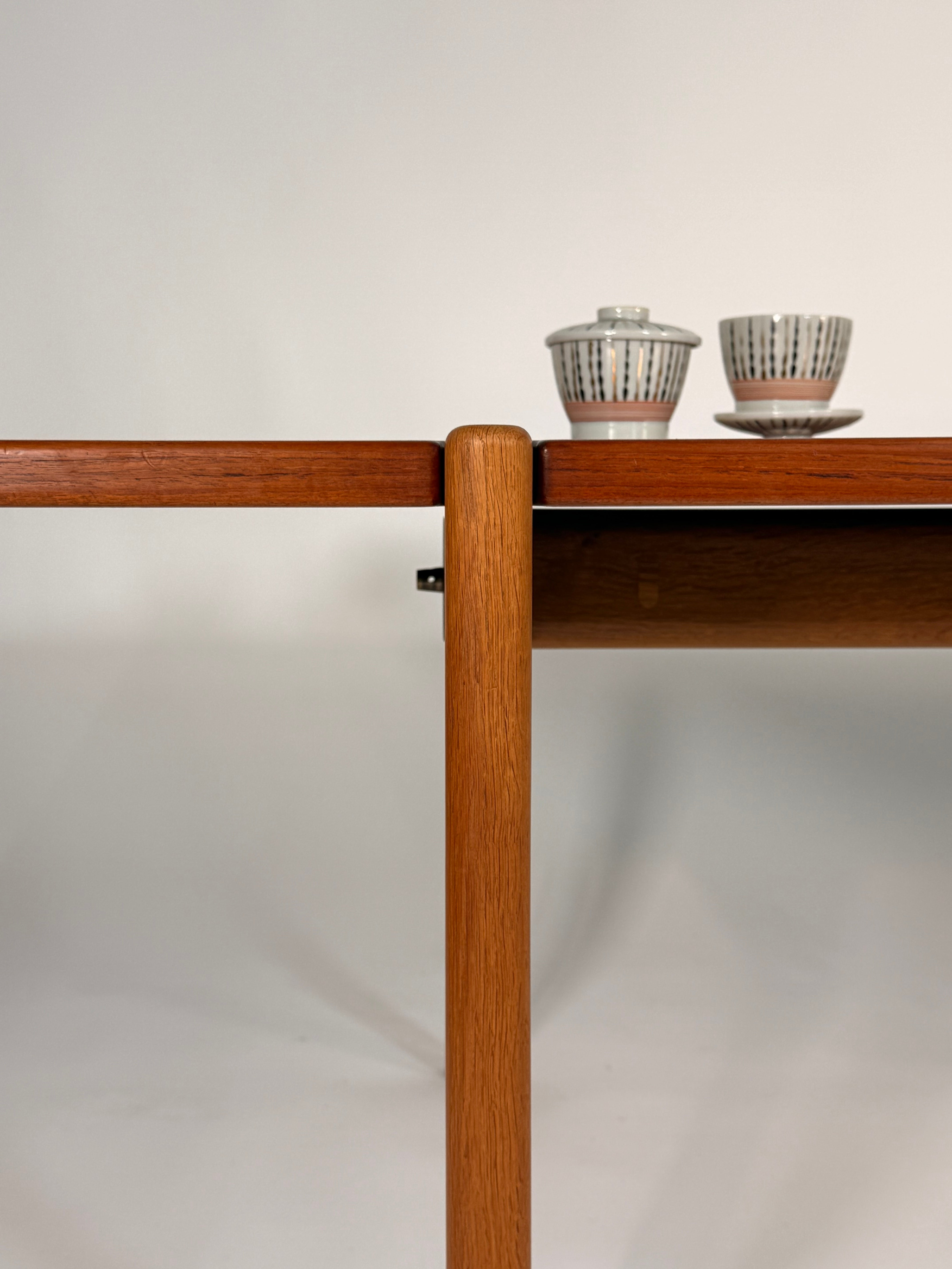 Constructed with a teak top, oak base, and black laminate surface, this piece is as functional as it is timeless. The innovative flip top design allows the table to transform from a compact coffee table to a larger surface, making it ideal for both everyday use and entertaining. The warm richness of the teak is complemented by the solid oak frame, while the sleek black laminate adds a bold, modern contrast.
