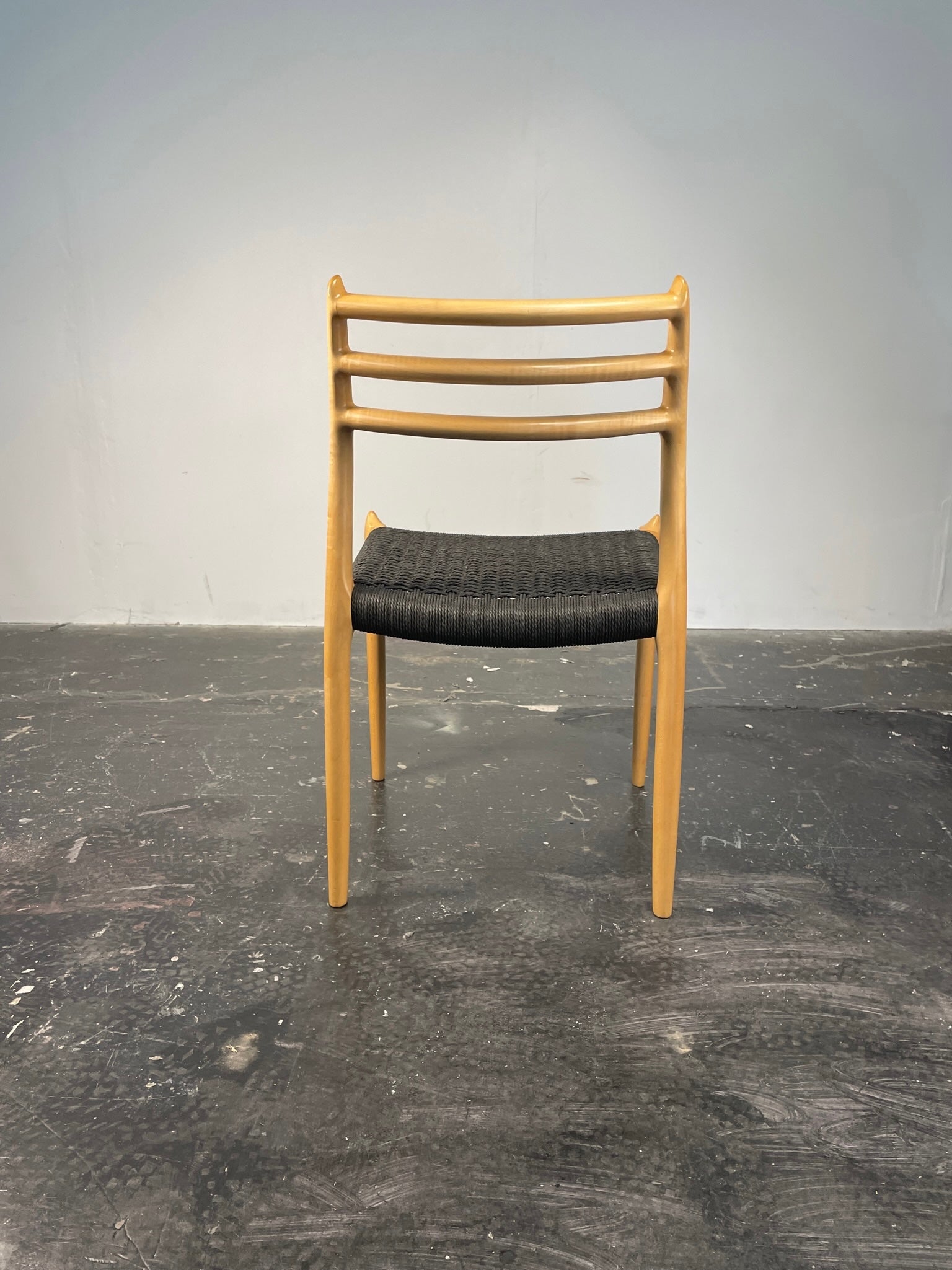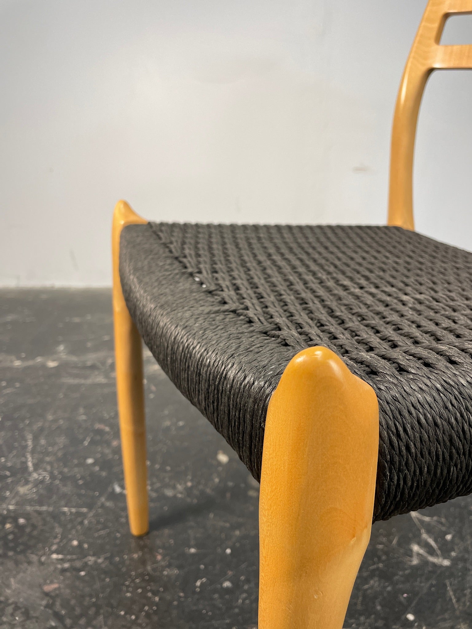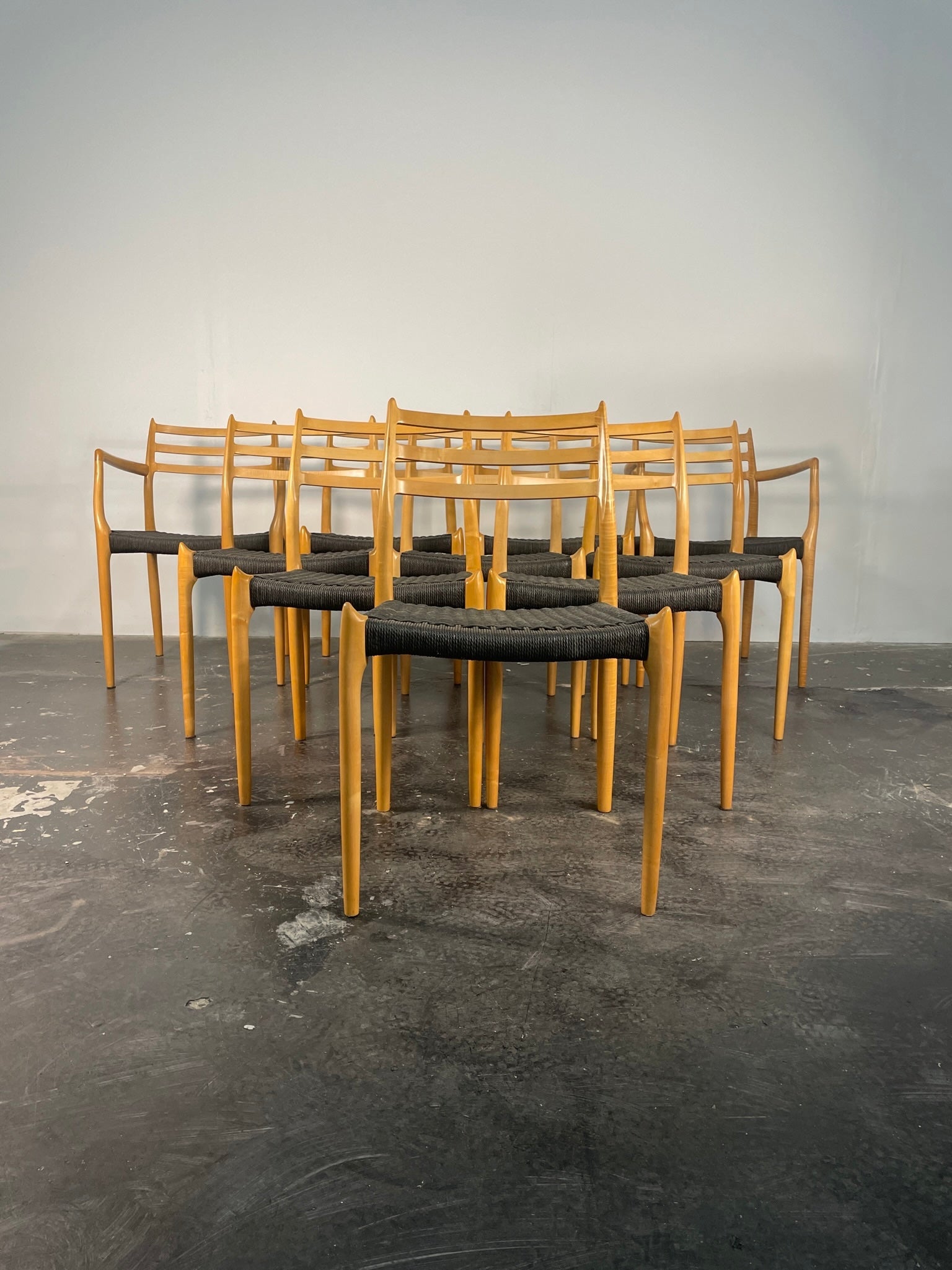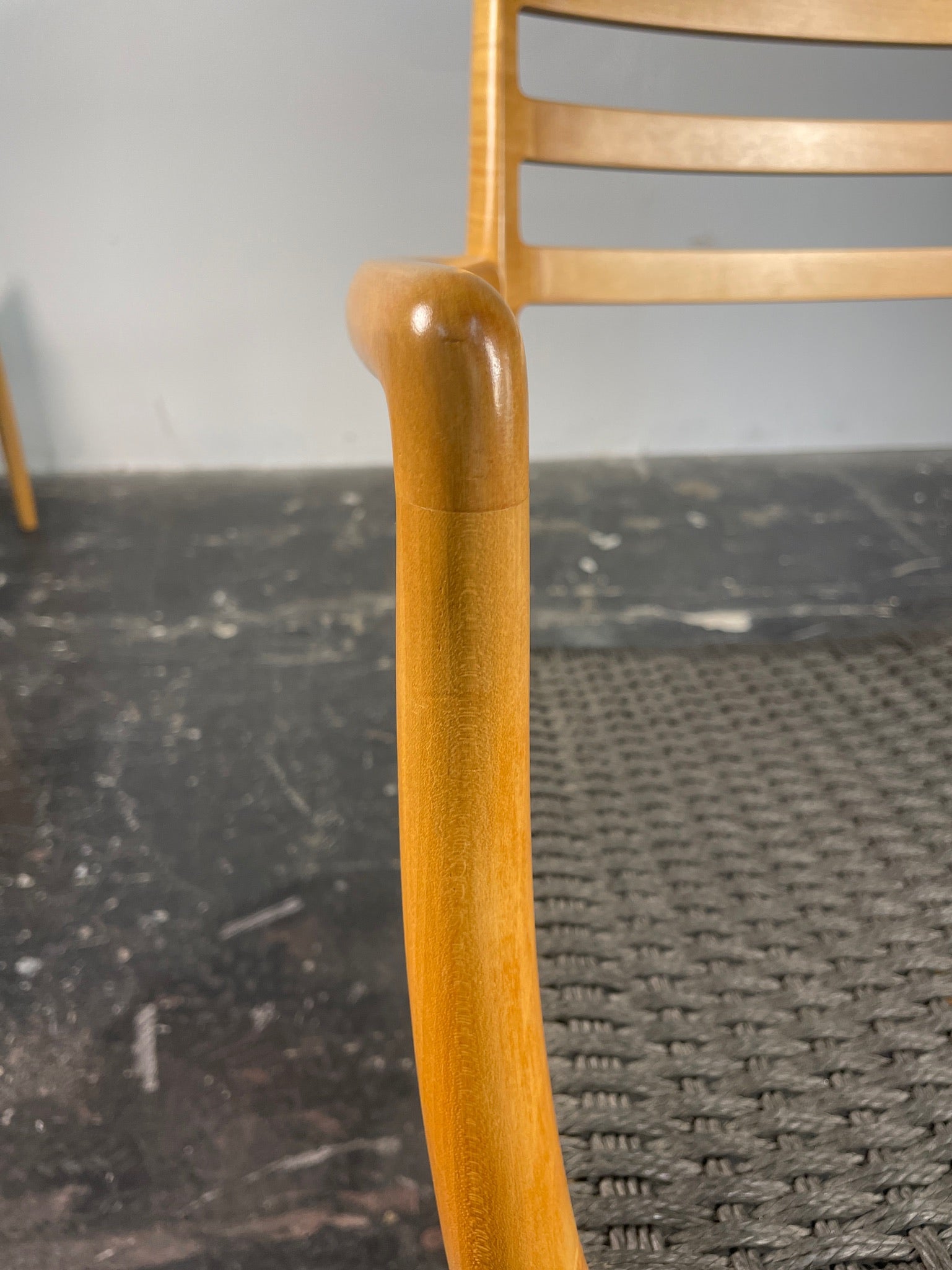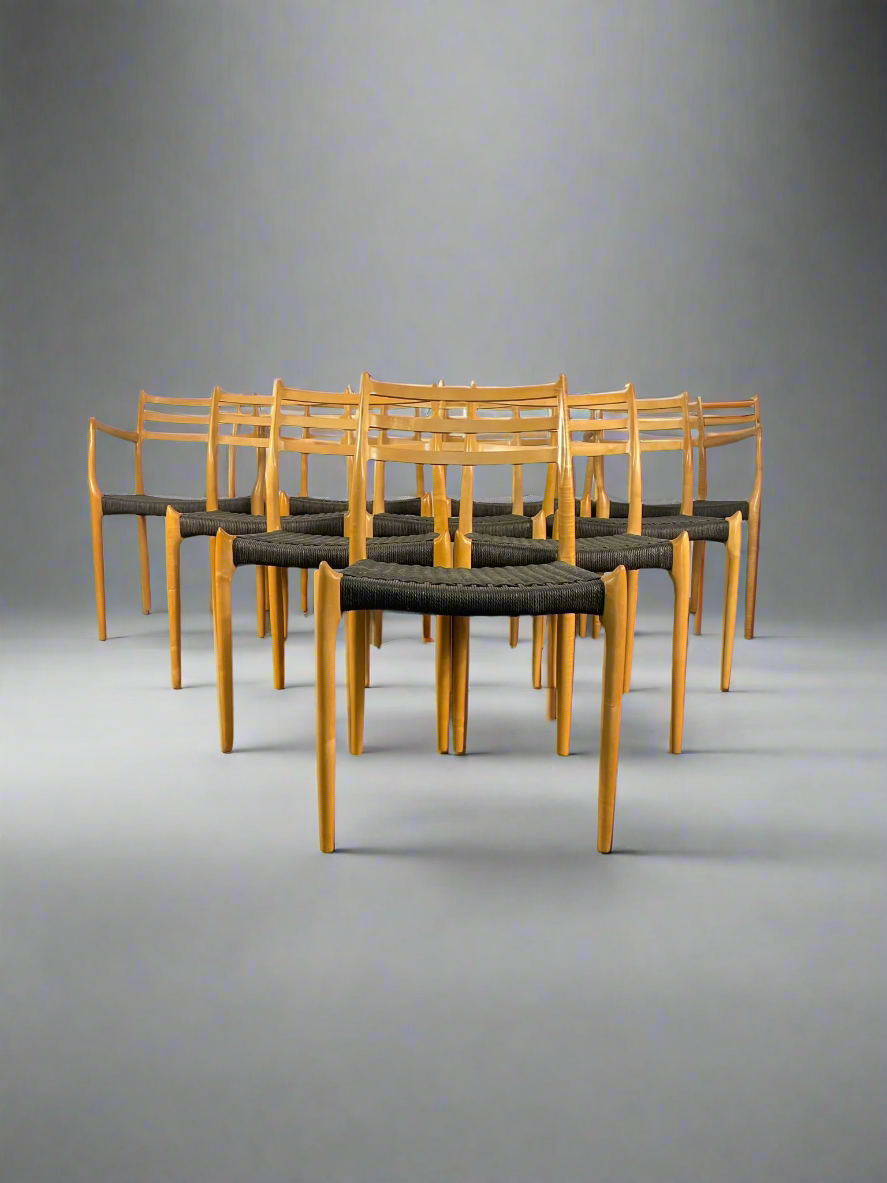 The chairs have been meticulously professionally restored, and the frames present in excellent condition. The sculptural lines, hand-shaped joints, and tightly woven cord seats all speak to the extraordinary level of craftsmanship that defines the work of Niels Otto Møller.