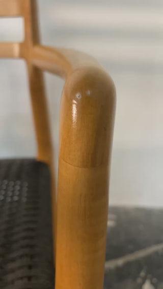 Niels Otto Møller, founder of J.L. Møllers Møbelfabrik in 1944, was both a master cabinetmaker and designer. His work is synonymous with Danish modernism, marrying ergonomic function with elegant, flowing forms. Each chair reflects Møller’s devotion to traditional woodworking techniques and natural materials.Møller was deeply influenced by and part of the design lineage that included Kaare Klint, often called the father of modern Danish furniture design, whose emphasis on proportion and craftsmanship laid the groundwork for a generation. He was also contemporaries with Hans J. Wegner, whose sculptural, organic approach paralleled Møller’s own, and Finn Juhl, who helped bring Danish modern design to an international audience with his expressive, humanist furniture. Together, these designers defined the golden age of mid-century Danish design.