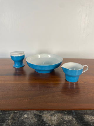 Vintage Set of Paul McCobb by Jackson China Ceramic Sugar Bowl, Milk Pitcher, and Bowl in Blue