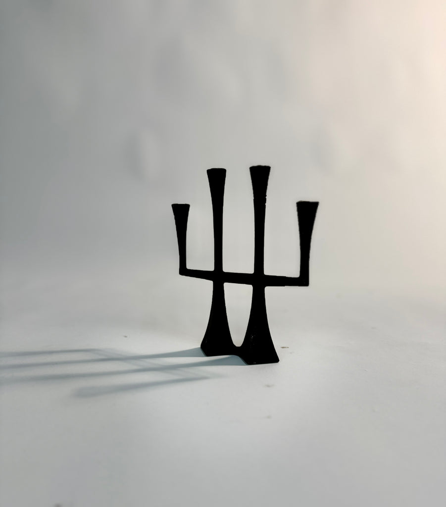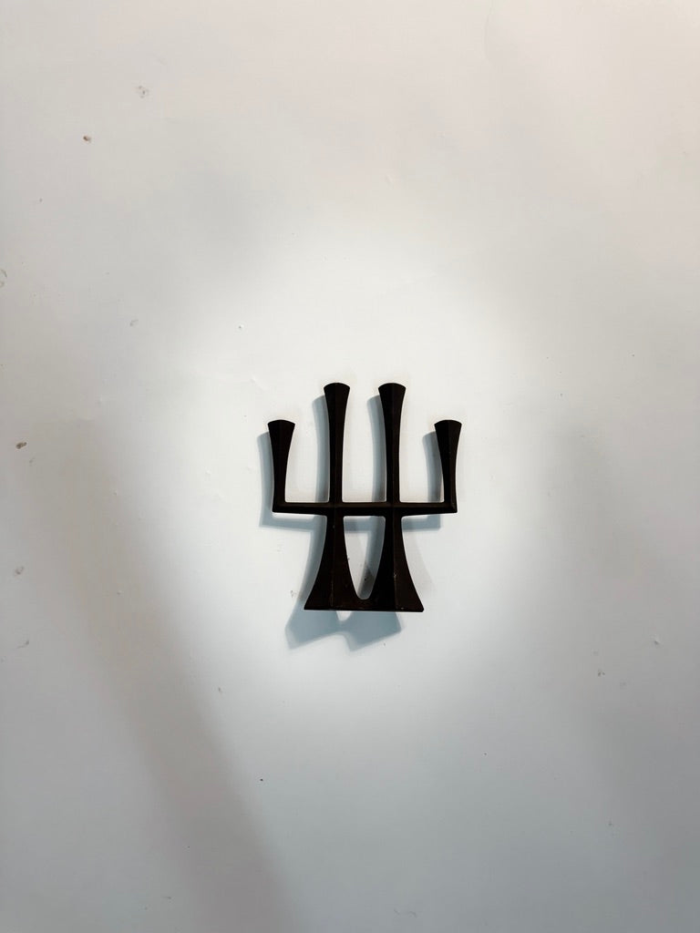 Sculptural, spare, and unmistakably Dansk—this pair of wrought-iron candleholders by Jens H. Quistgaard brings a quiet drama to any table scape or mantel. The forms read like line drawings in space: slim stems, poised cups, and enough negative space to let candlelight breathe. Each is stamped “Denmark, affirming authentic mid-century origin.