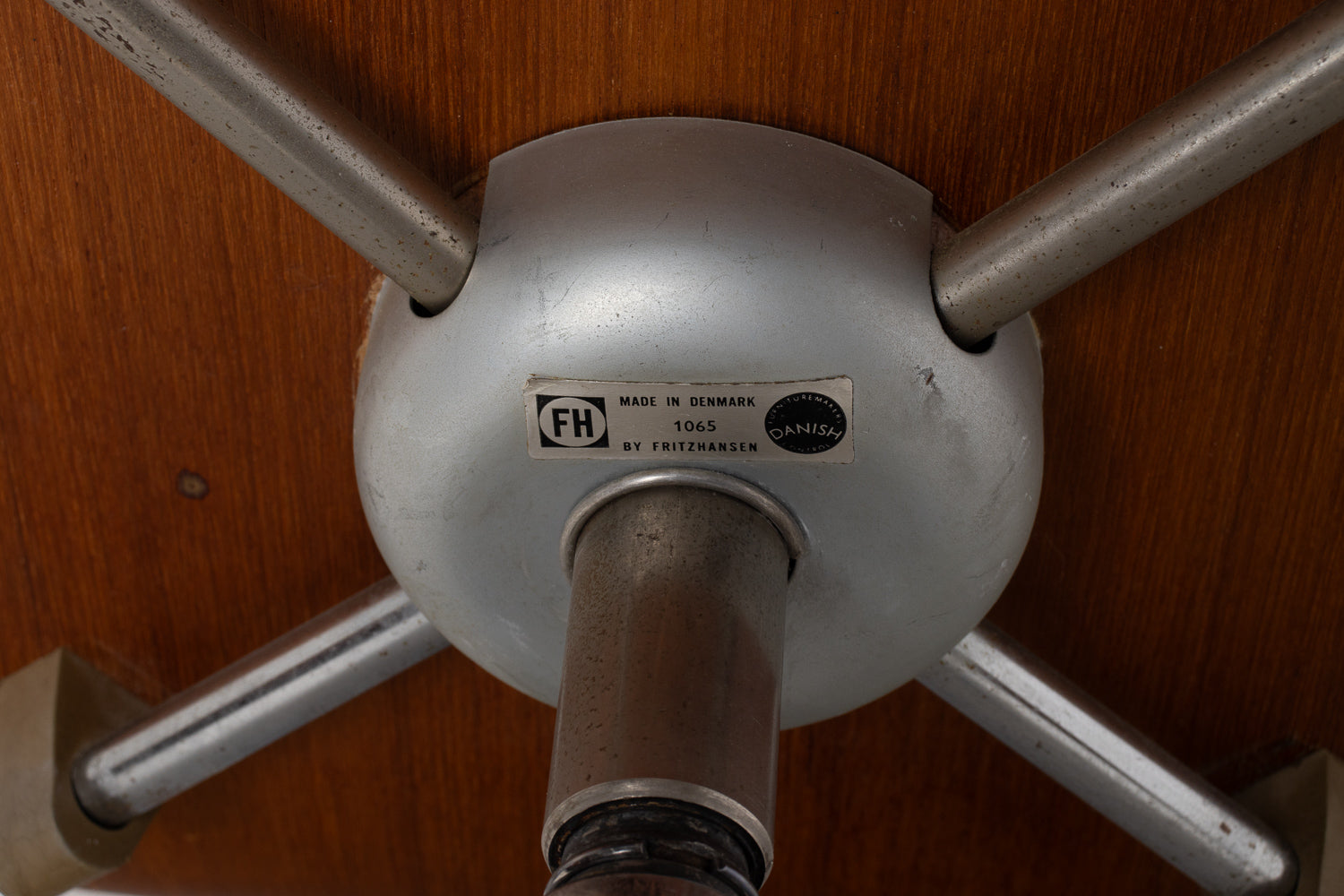 • This rare Series 7 desk chair is by Arne Jacobsen and is one of the most important chair designs of the 20th century. The chair retains its original manufacturer labels affixed beneath the seat.