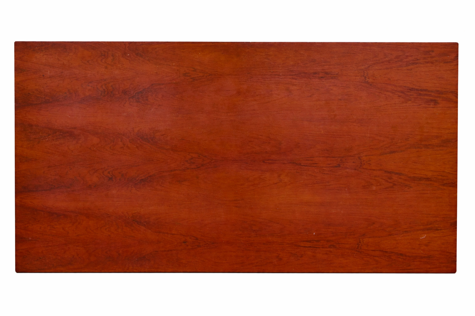 At the heart of the design is a stunning Brazilian rosewood top, rich in natural grain and warm tones, set atop a sleek chromed-steel 4-star pedestal base. Its minimalist yet robust construction reflects Knoll’s architectural approach to furniture, balancing form and utility.