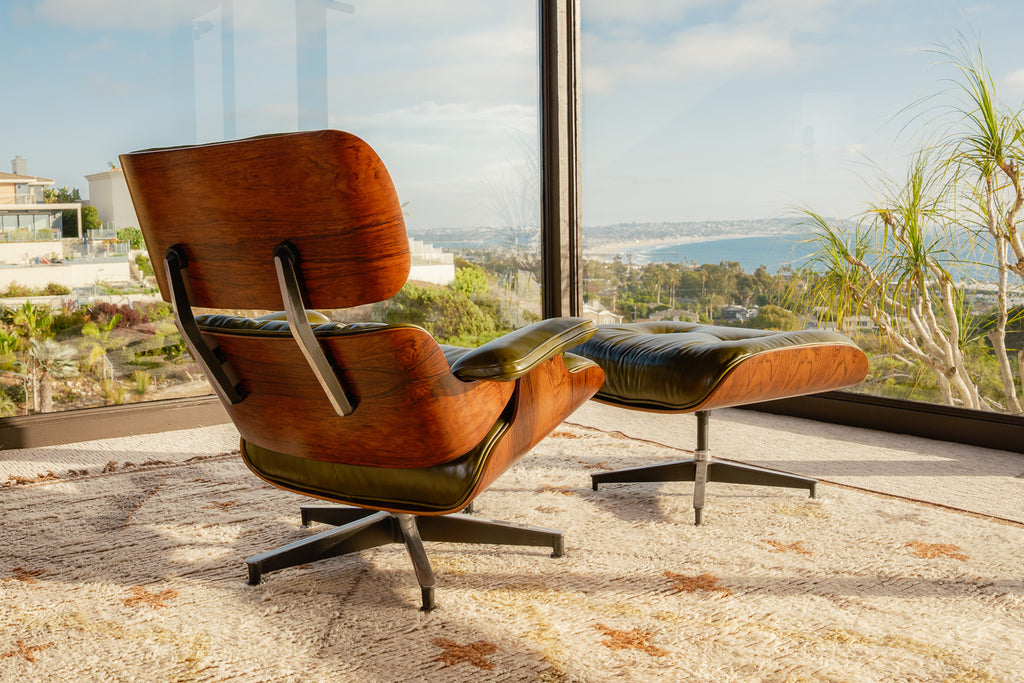 Designed by Charles and Ray Eames for Herman Miller and introduced in 1956, the Lounge Chair and Ottoman quickly became a symbol of luxury, innovation, and timeless modernism. This third-generation version retains the integrity of the classic form while showcasing details specific to early 1970s production the coveted deep rosewood grain, now no longer available due to export restrictions on Brazilian rosewood.