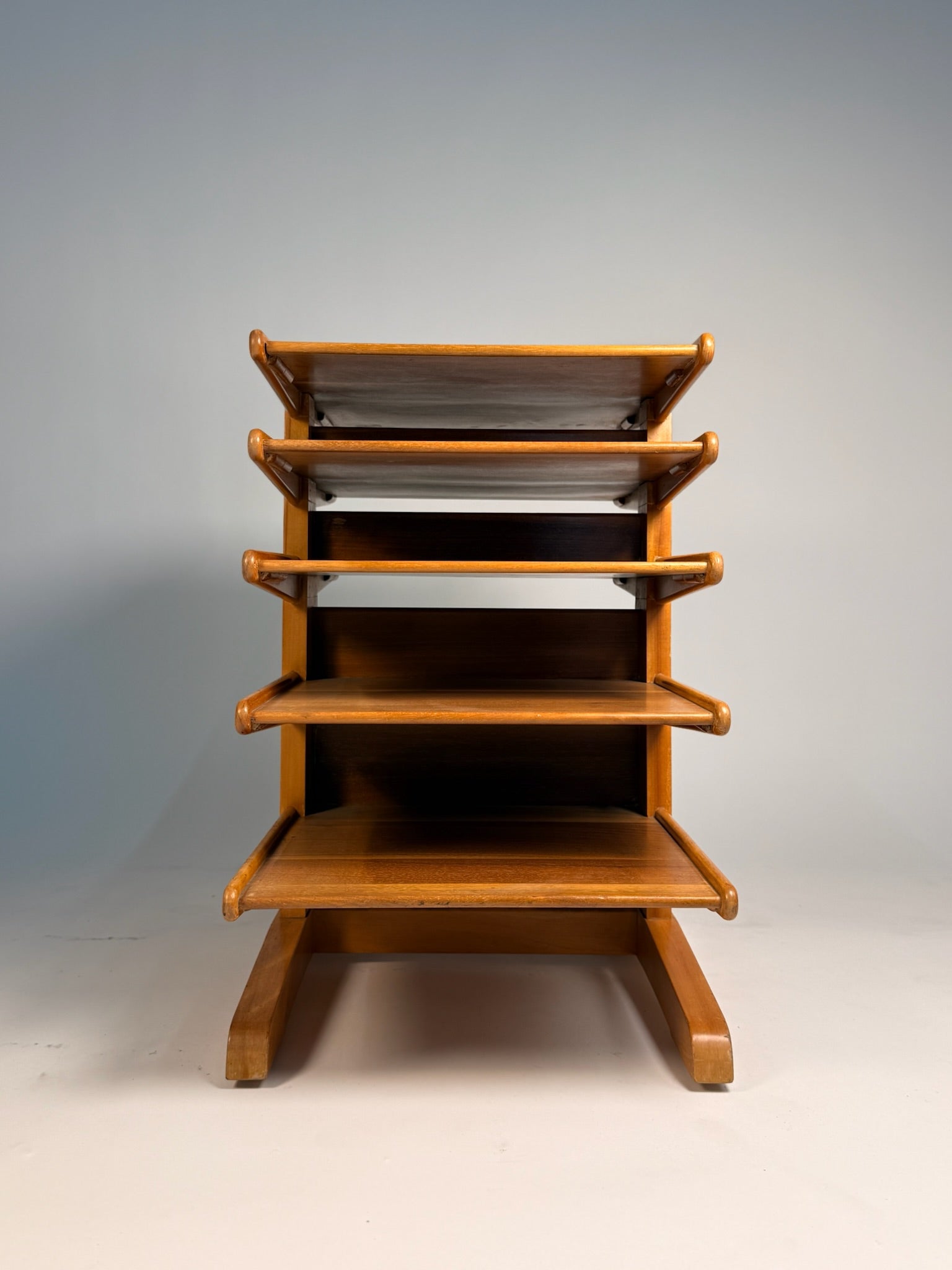 Designed by Edward Wormley for Dunbar, Berne, Indiana, the Magazine Tree embodies Wormley’s hallmark: modern lines elevated by cabinetmaker craftsmanship. An original DUNBAR metal tag is present (see photos). Produced in far smaller numbers than his case pieces, this model is genuinely rare and sought after by collectors and designers for its form and function.