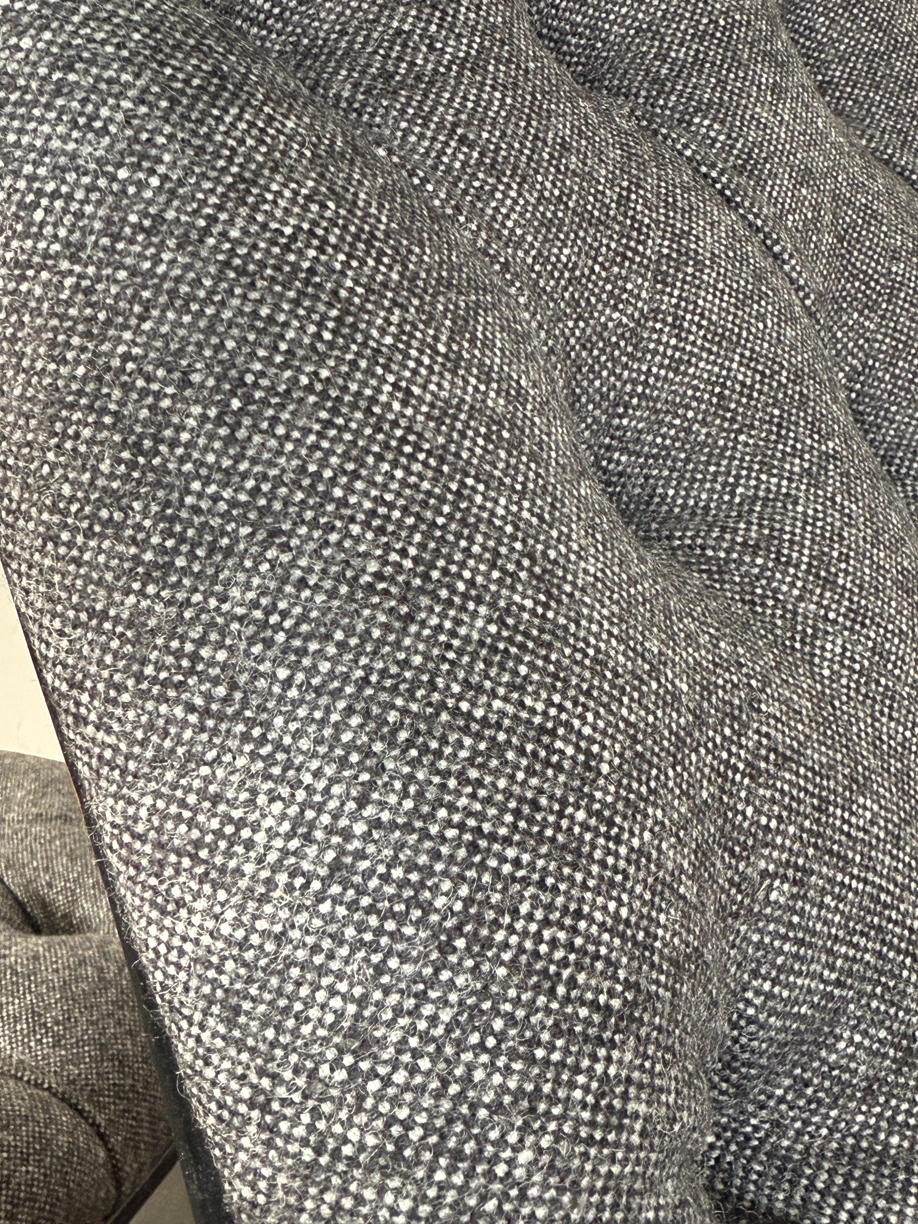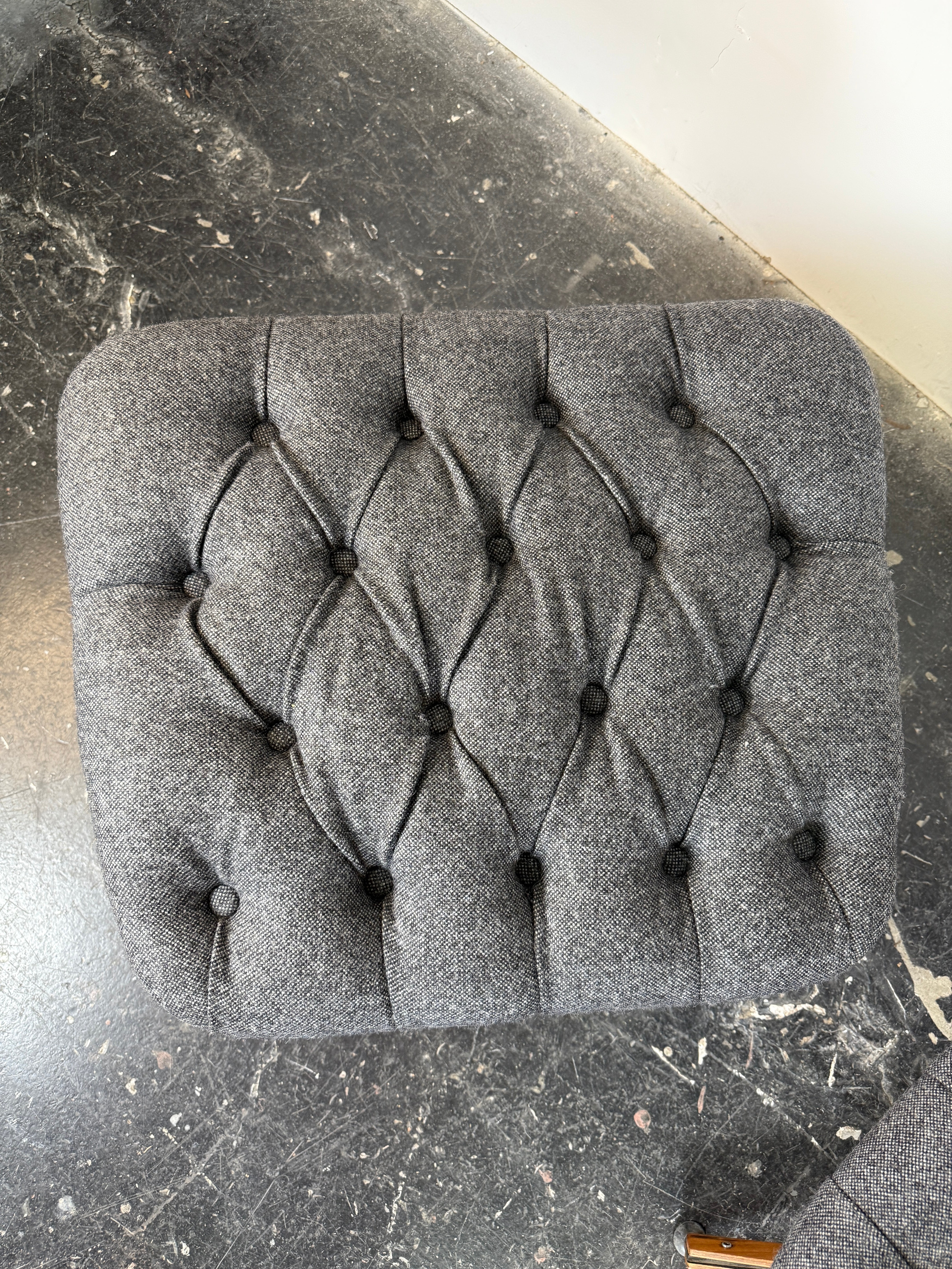 The seat and backrest are reupholstered in Maharam’s Beck fabric in the soft and durable “Molecule” colorway, a premium wool blend that offers both luxurious texture and enduring quality. The diamond tufting pays homage to the original design, enhancing the chair's visual depth and plush feel. This fabric choice, along with the ergonomic contours of the seat, ensures comfort over extended periods—this chair doesn't just look incredible, it feels incredible.