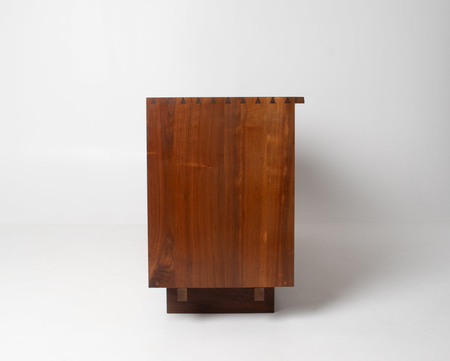 Designed and made by George himself in his New Hope studio, the credenza embodies a quiet Japanese simplicity—restrained, elemental, and deeply tactile—balanced by the American walnut’s warmth and chatoyance. The low plinth feet ground the form; edges are softly eased by hand, inviting touch.