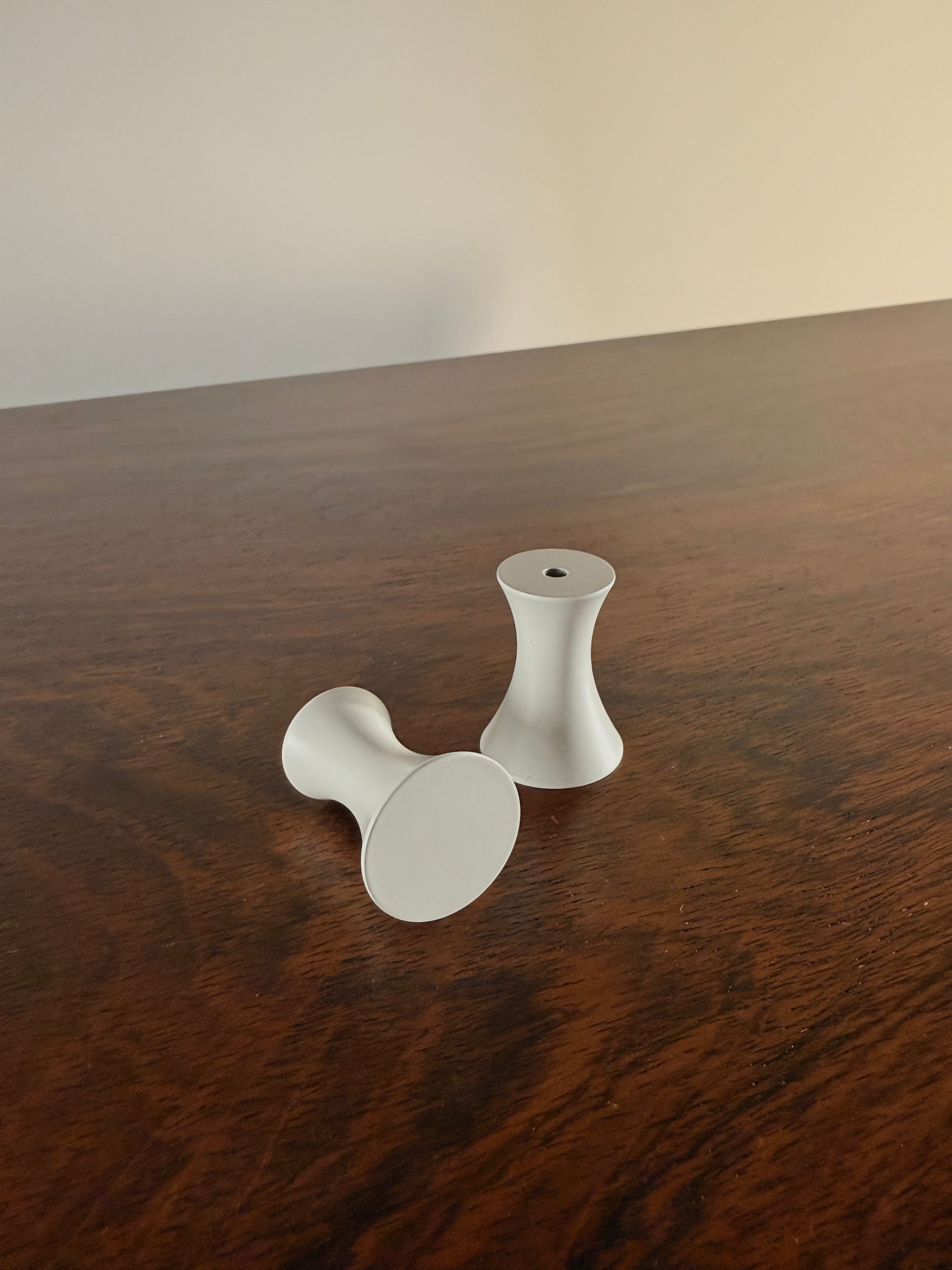 Faithfully reproduced to match the original specifications, each pull is precision-crafted from solid aluminum and finished in a durable white powder coat. The crisp lines and distinctive hourglass form highlight Nelson’s attention to functional beauty, while the clean white surface adds a fresh, versatile look suited to both vintage and contemporary settings.