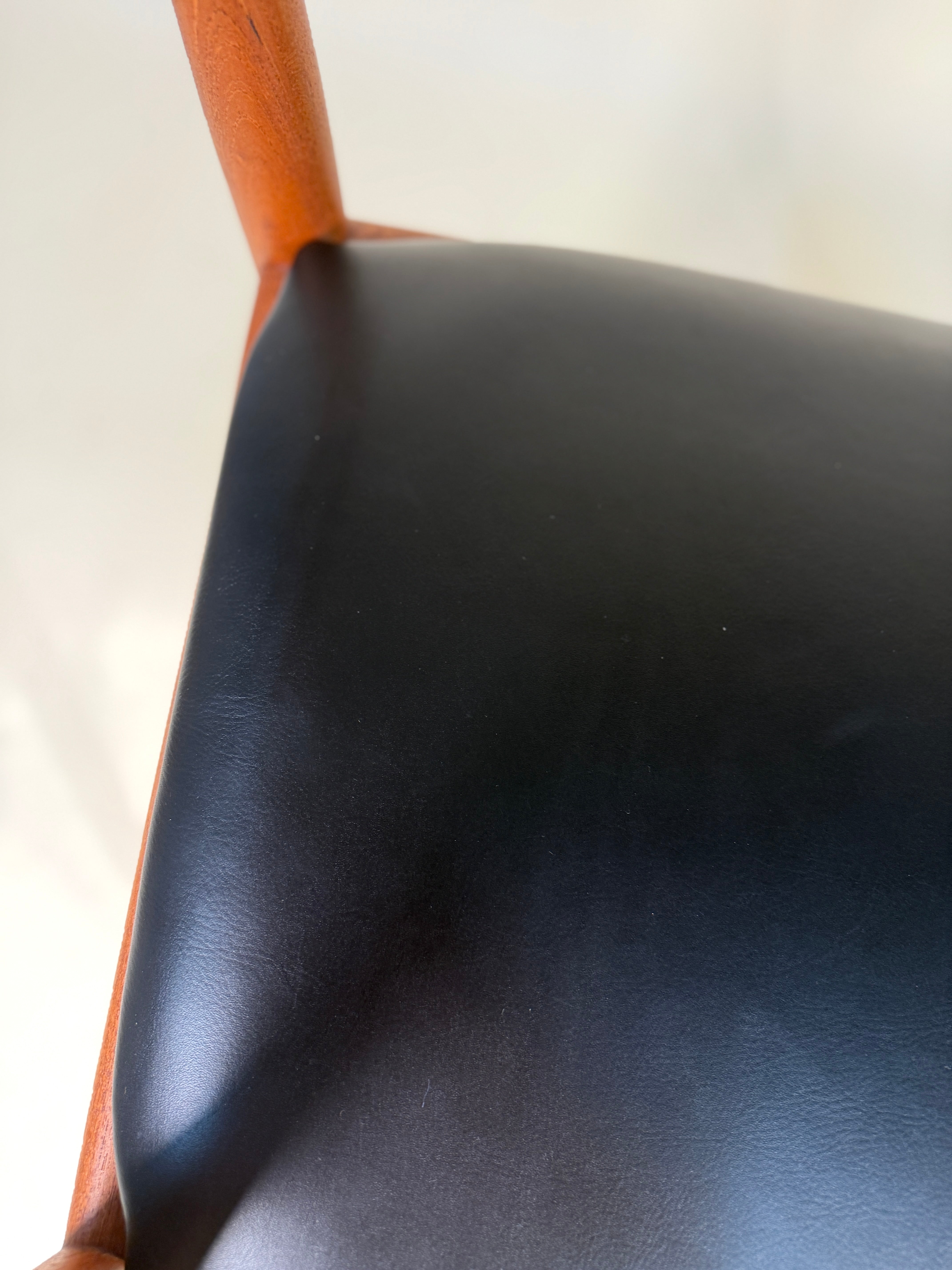 Materials: Solid teak, professionally reupholstered seats (or original, if applicable)