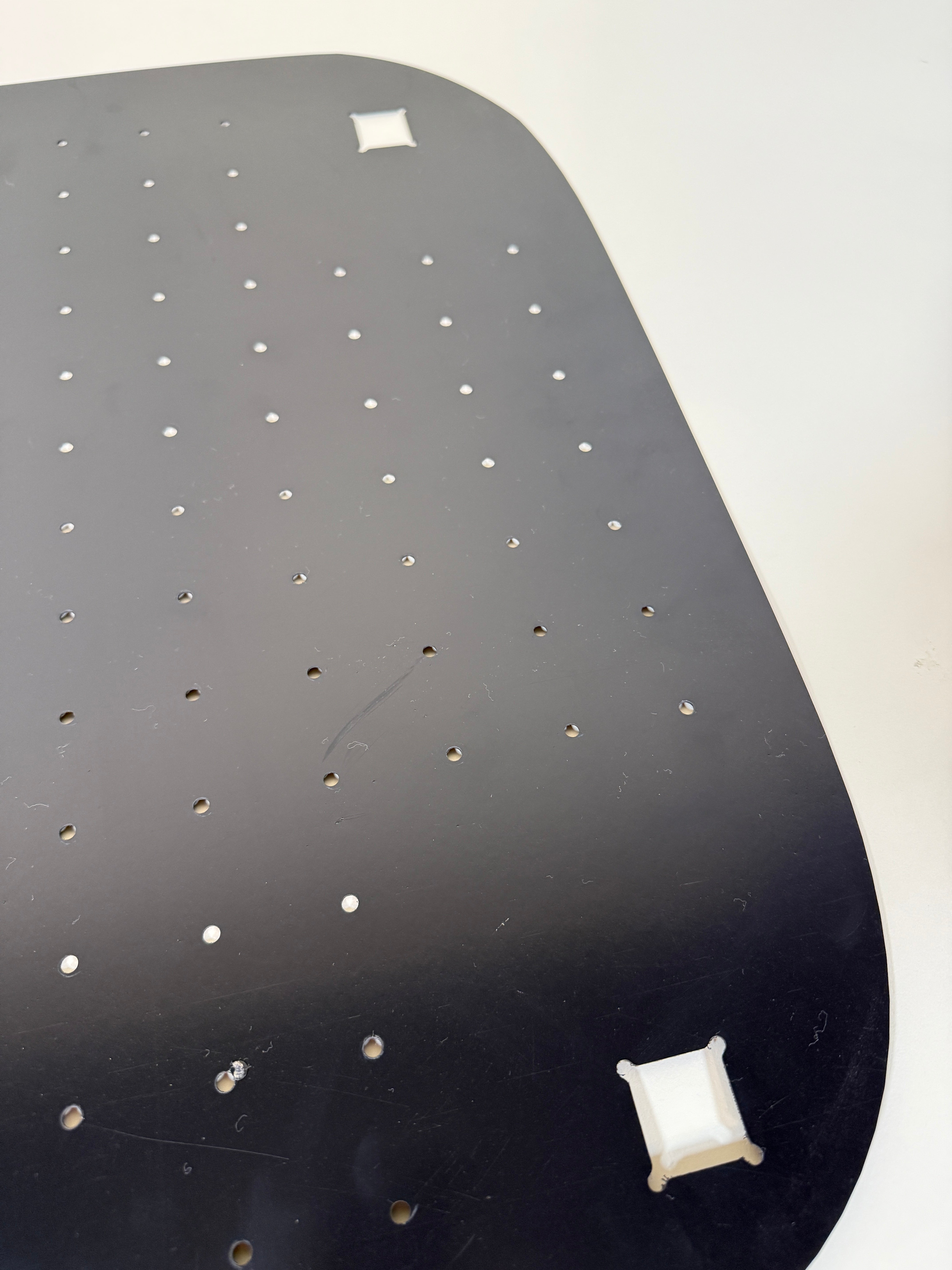 This is a replacement cushion backing panel designed specifically for Tall Eames Lounge Chairs (model 670) manufactured from 2005 to present with black plastic clips. Crafted in matching molded plastic, this backing includes a pre-installed female snap positioned for a precise fit—making it an easy and accurate solution for restoring your chair to its original comfort and appearance.