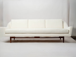 Jens Risom Model 2516 Sculptural Sofa – Vanilla Ice Cream Bouclé with Walnut Base