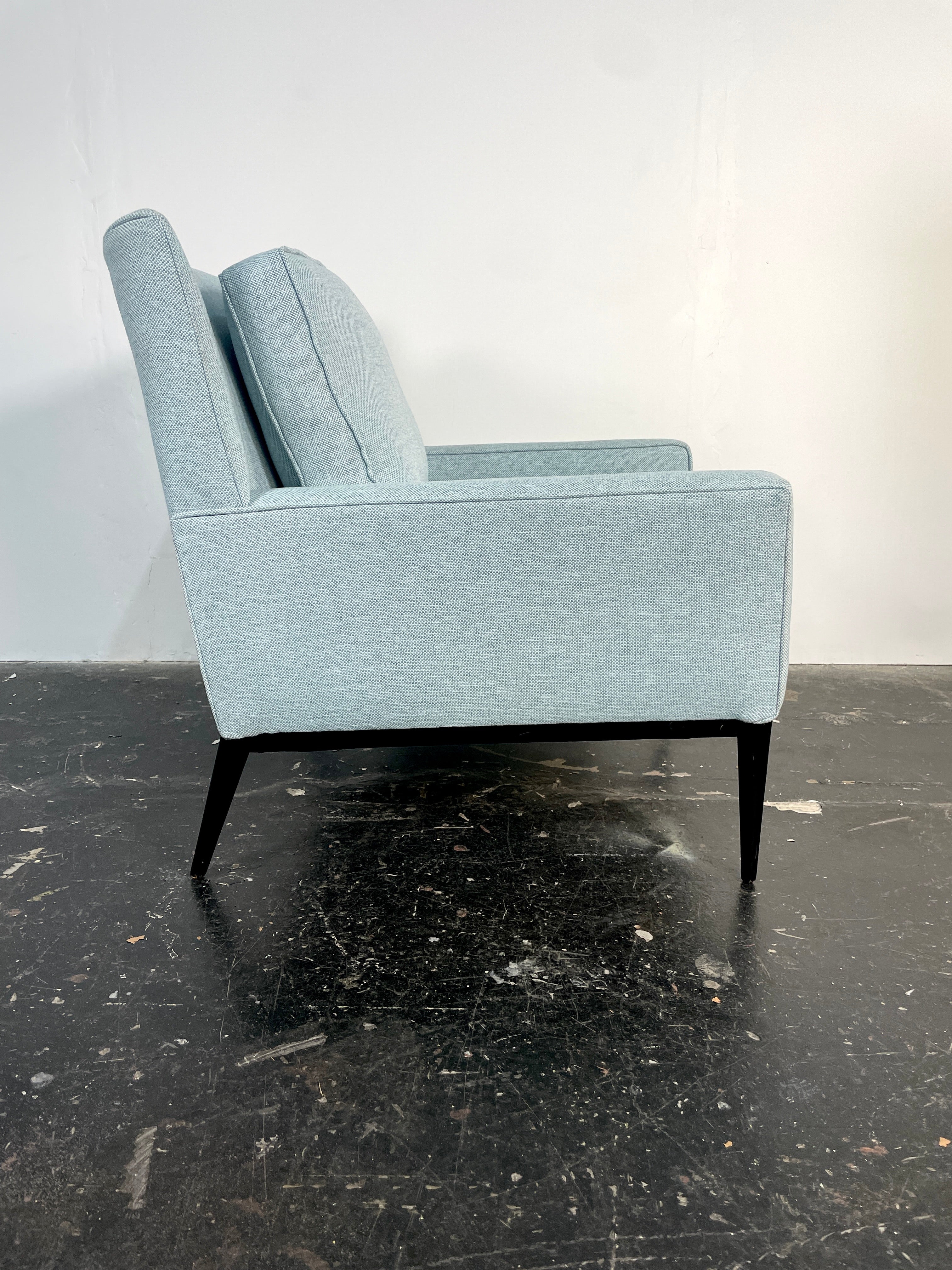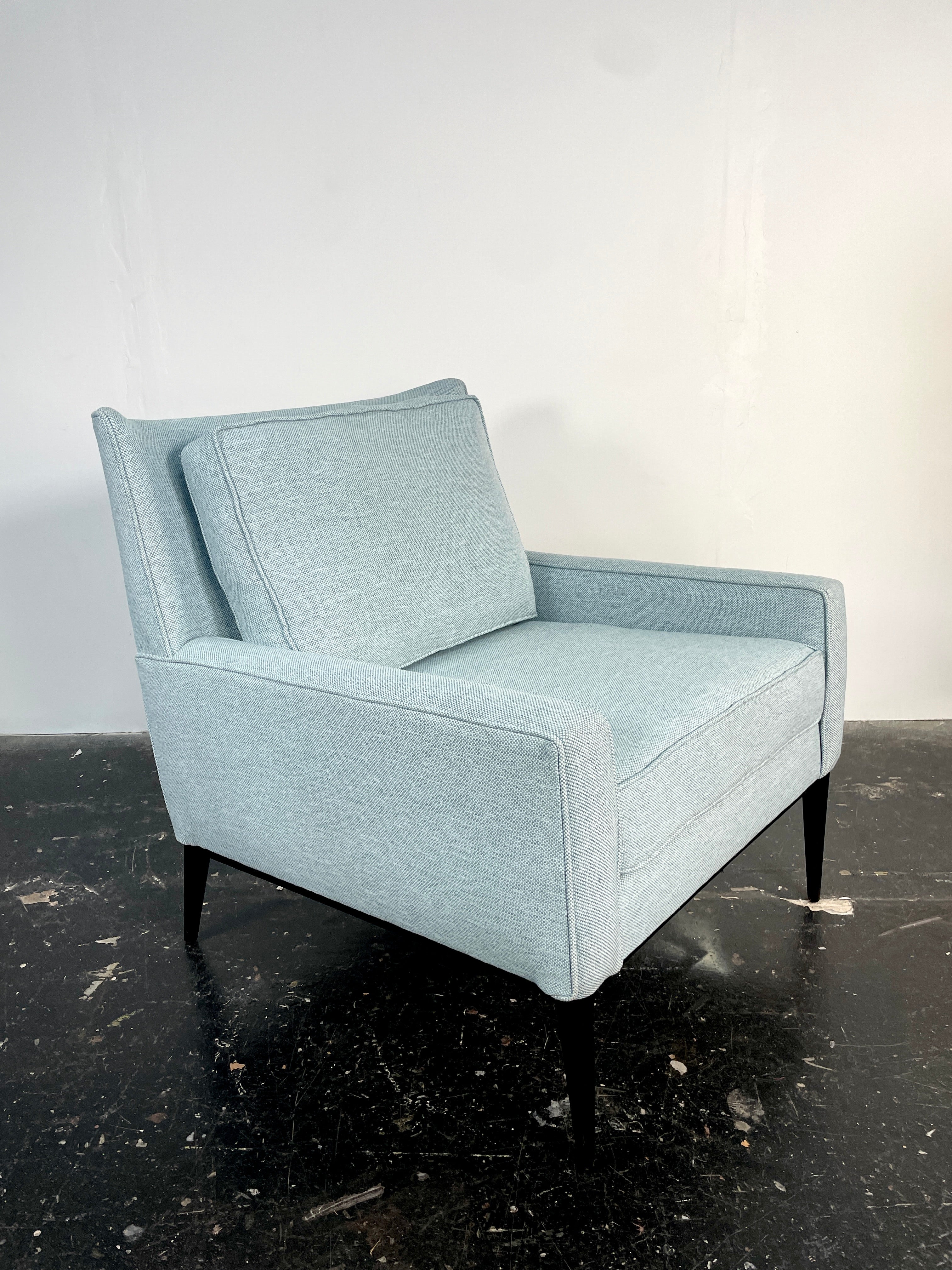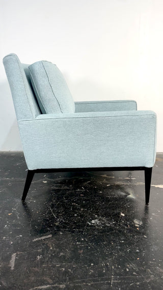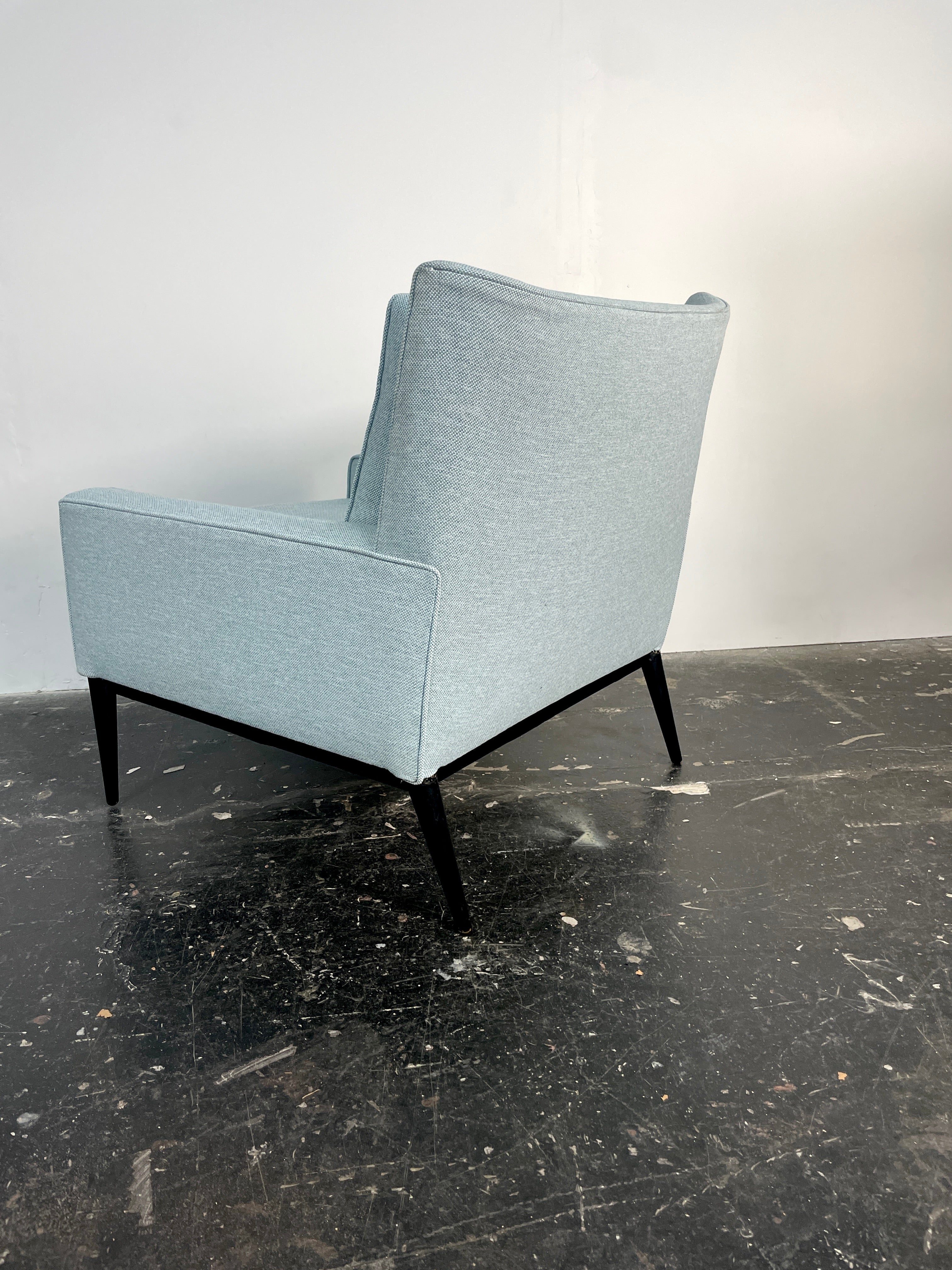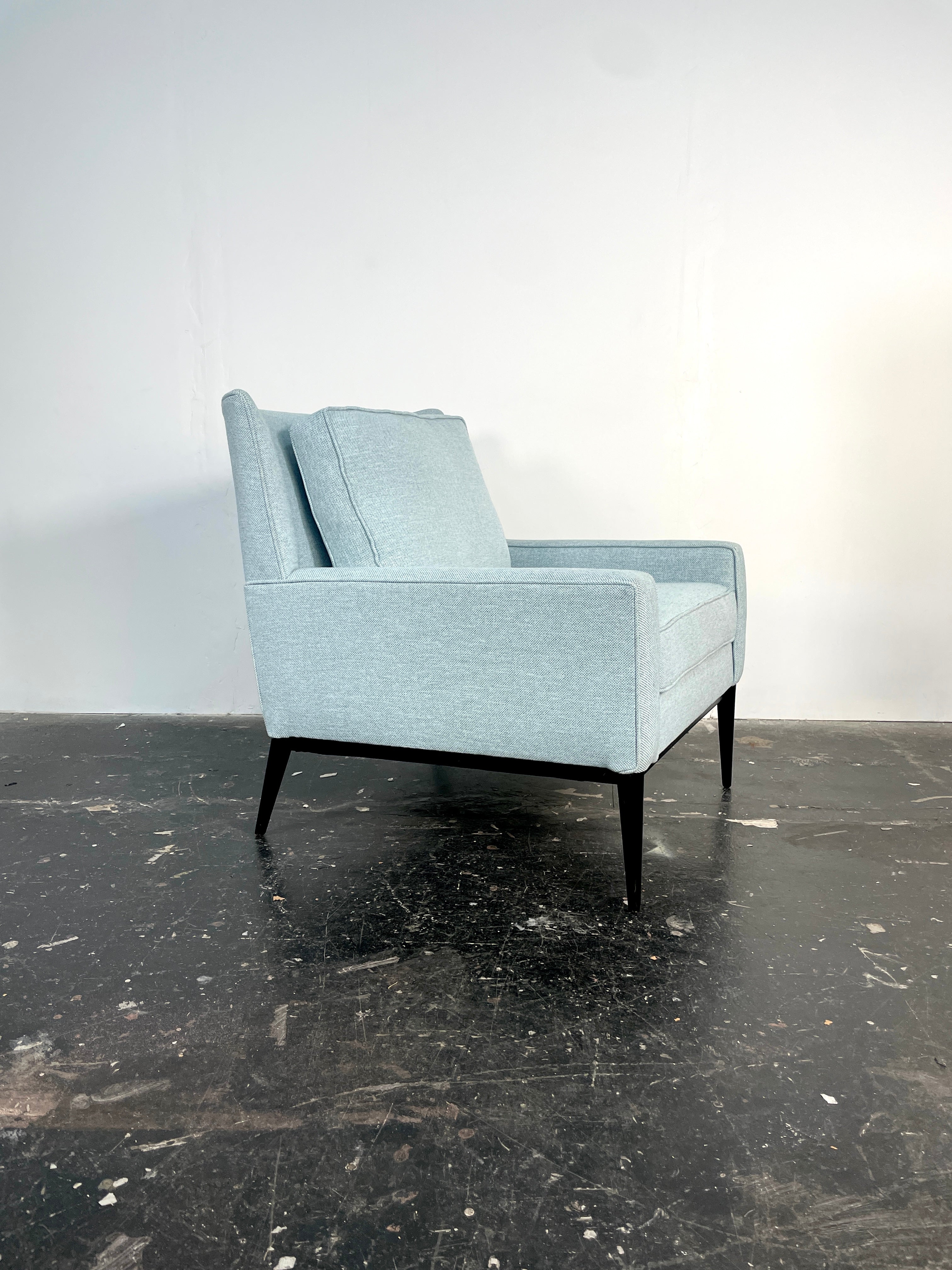 • This is a perfect slipper chair by Paul McCobb model 312 armchair for Directional in Maharam Mode: Saltwater.  Reupholstered in new fabric and foam. Great chair with clean understated lines.