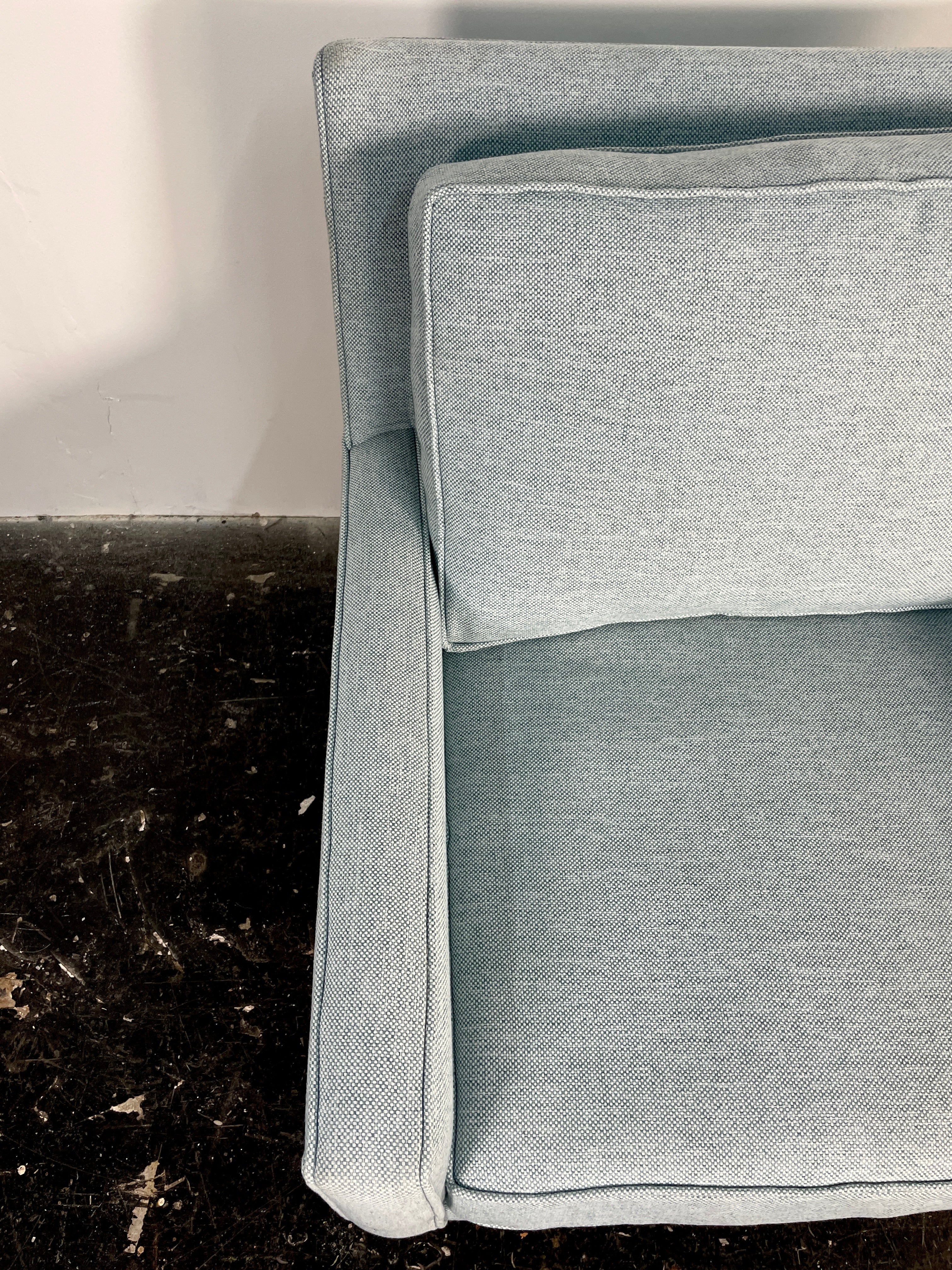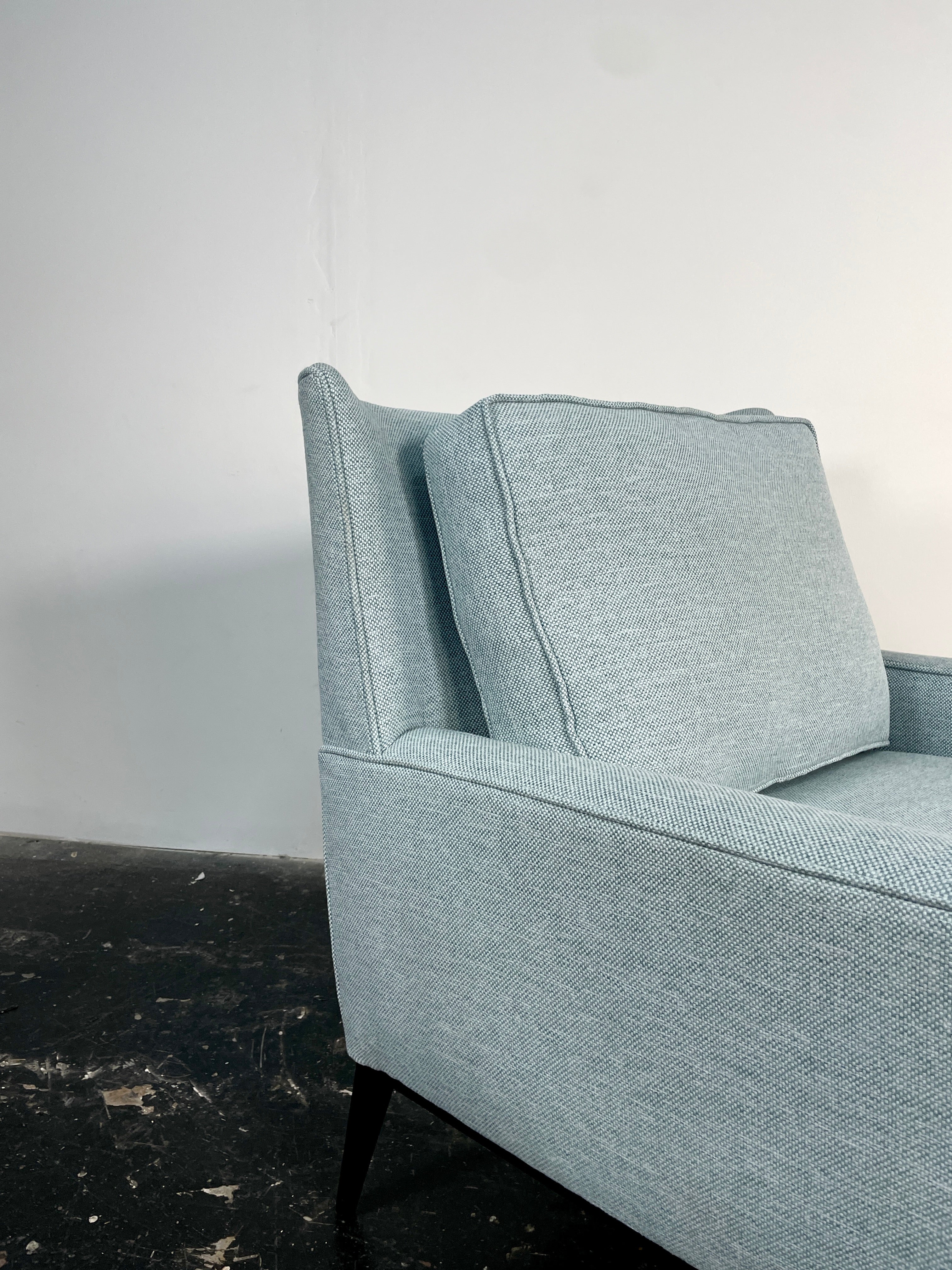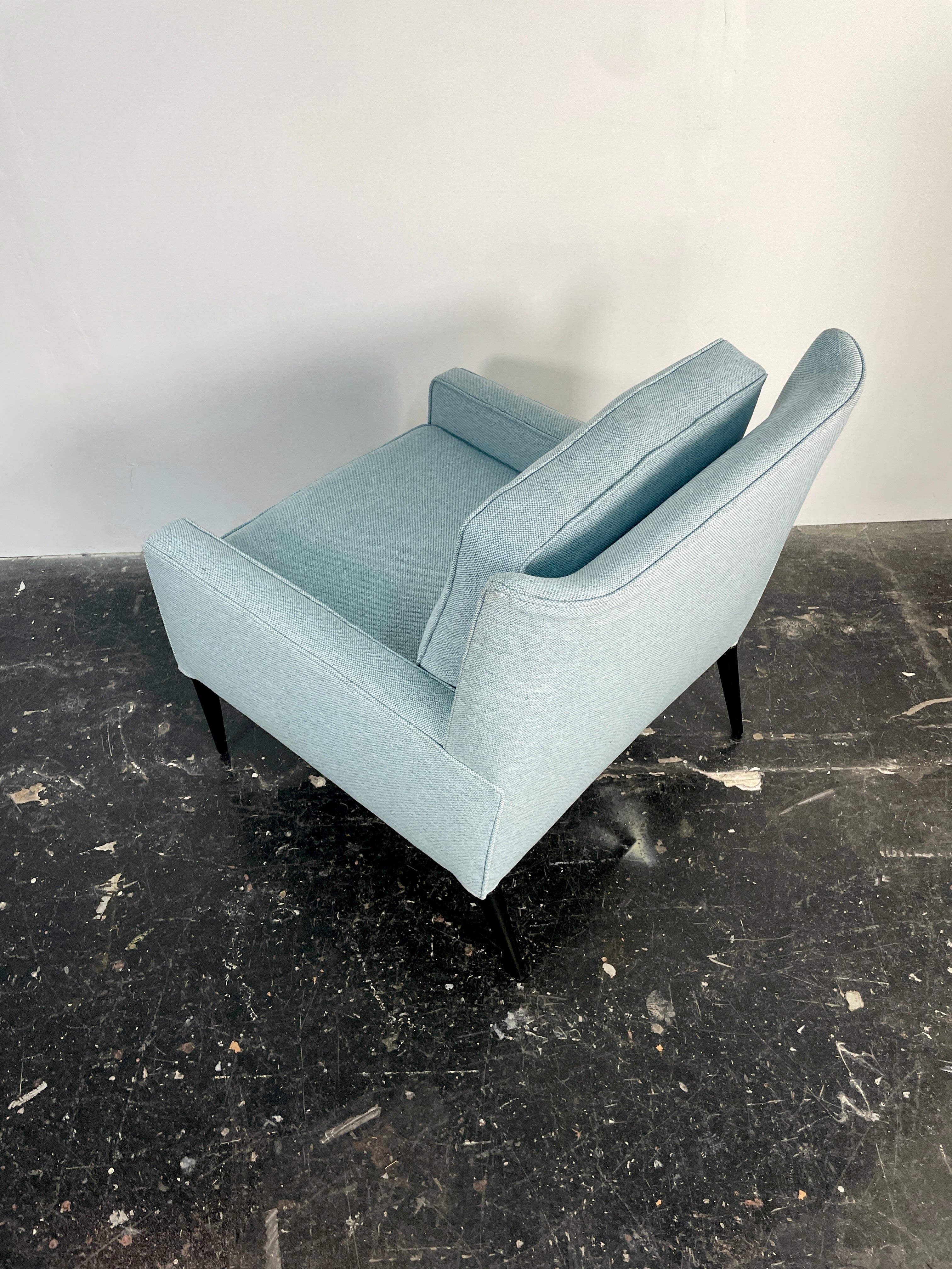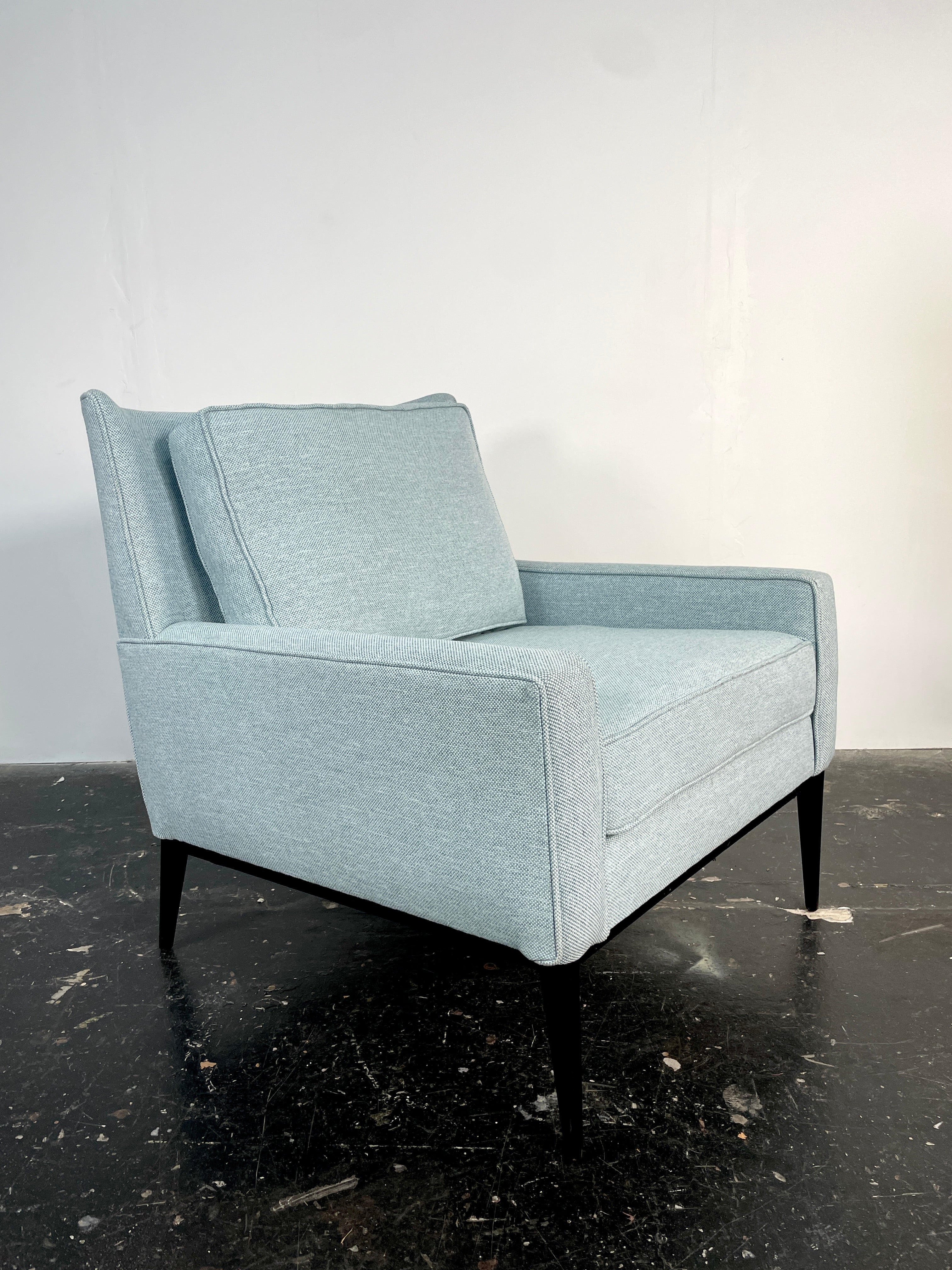 • This is a perfect slipper chair by Paul McCobb model 312 armchair for Directional in Maharam Mode: Saltwater.  Reupholstered in new fabric and foam. Great chair with clean understated lines.