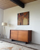 Exceptional vintage condition with gentle, age-appropriate character and a lovingly preserved oil finish. Doors glide smoothly; interiors are clean. Ready for placement and daily use. We have re-oiled this piece with George Nakashima preferred oil.