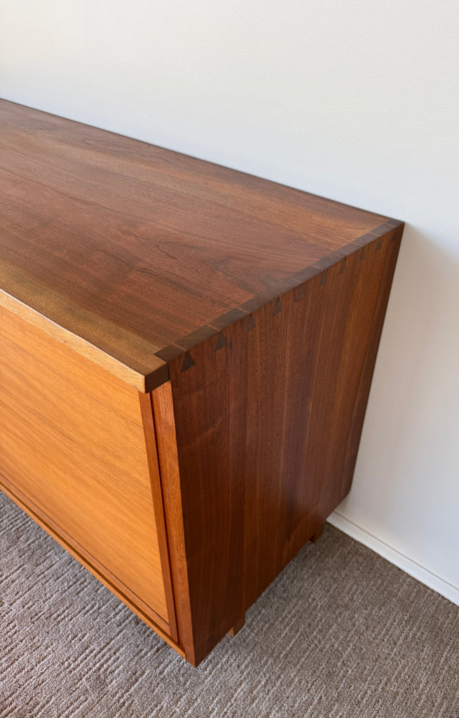 Through dovetail joinery at the case sides—signature Nakashima detail