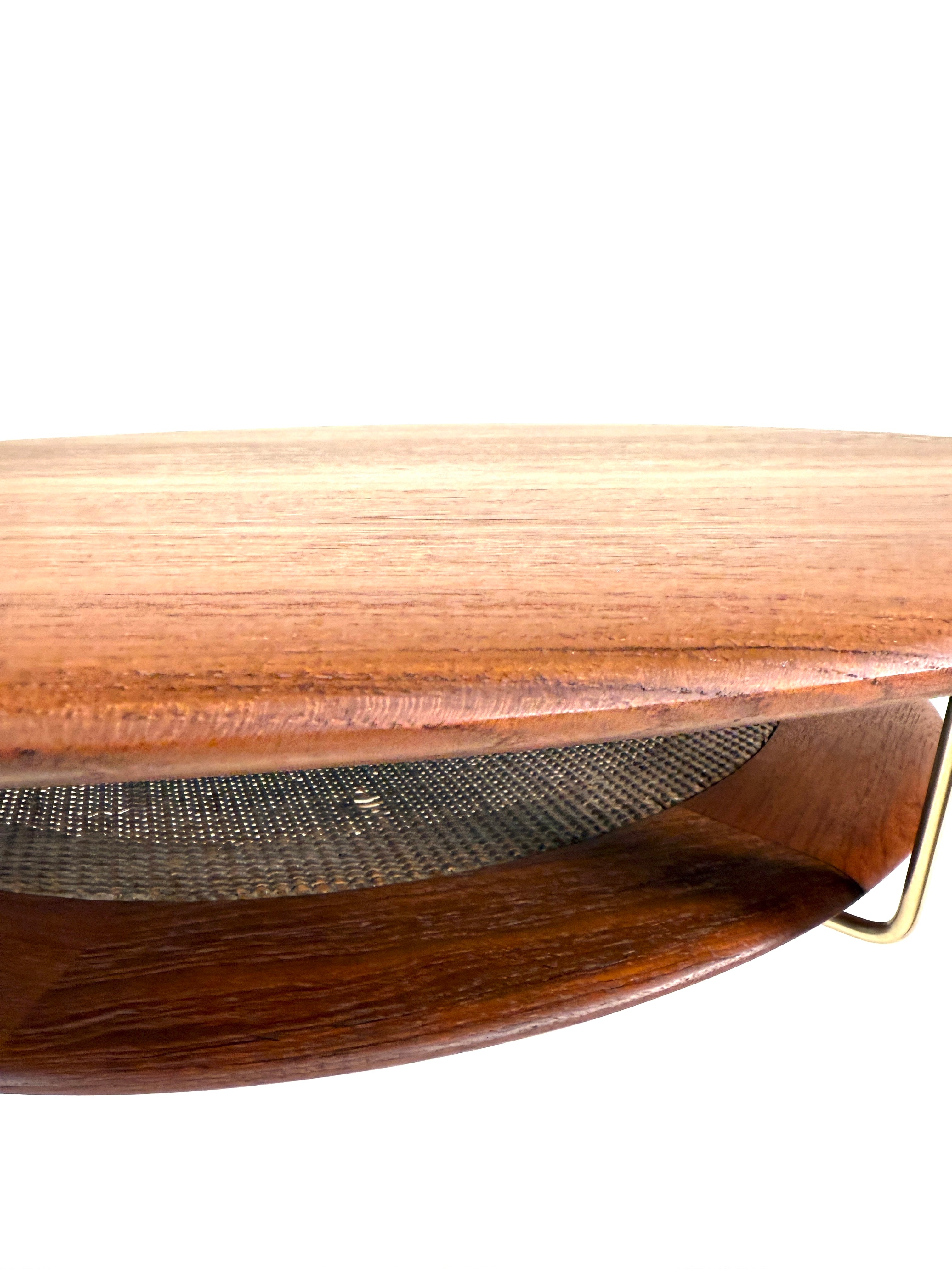 Brass Suspension Details: Elegant brass rod accents connect the sculptural lower shelf, adding a refined contrast to the wood while nodding to Danish Modern craftsmanship.