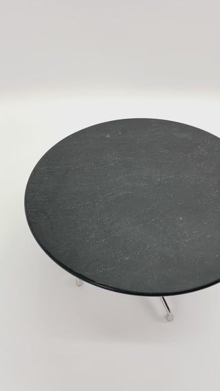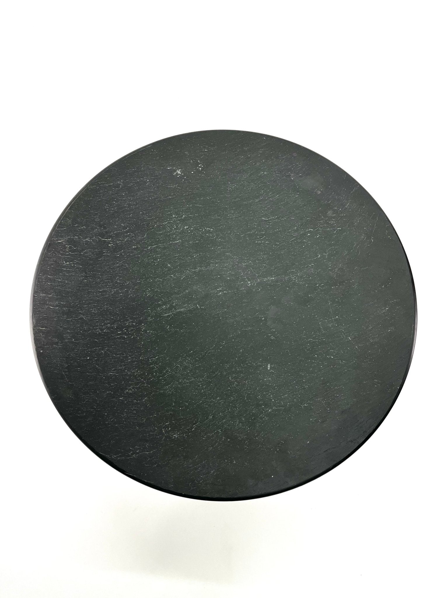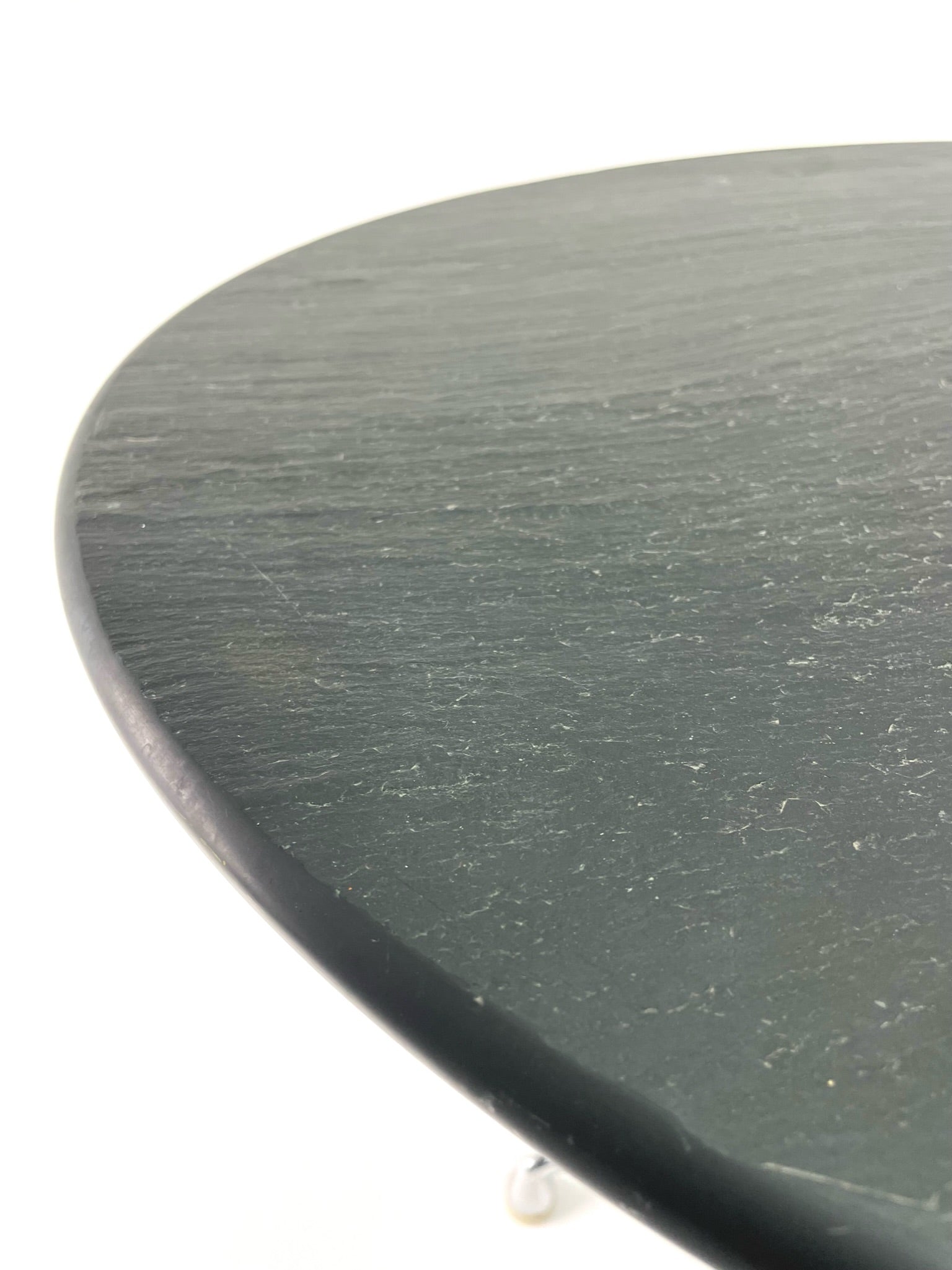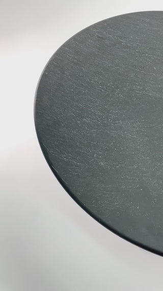 This table dark gray slate top that is aย particularly attractive element, the top surface left rough and naturalistic while the edges and underside are honed.ย