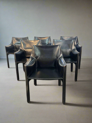 Set of Six Mario Bellini Cab Dining Armchairs for Cassina