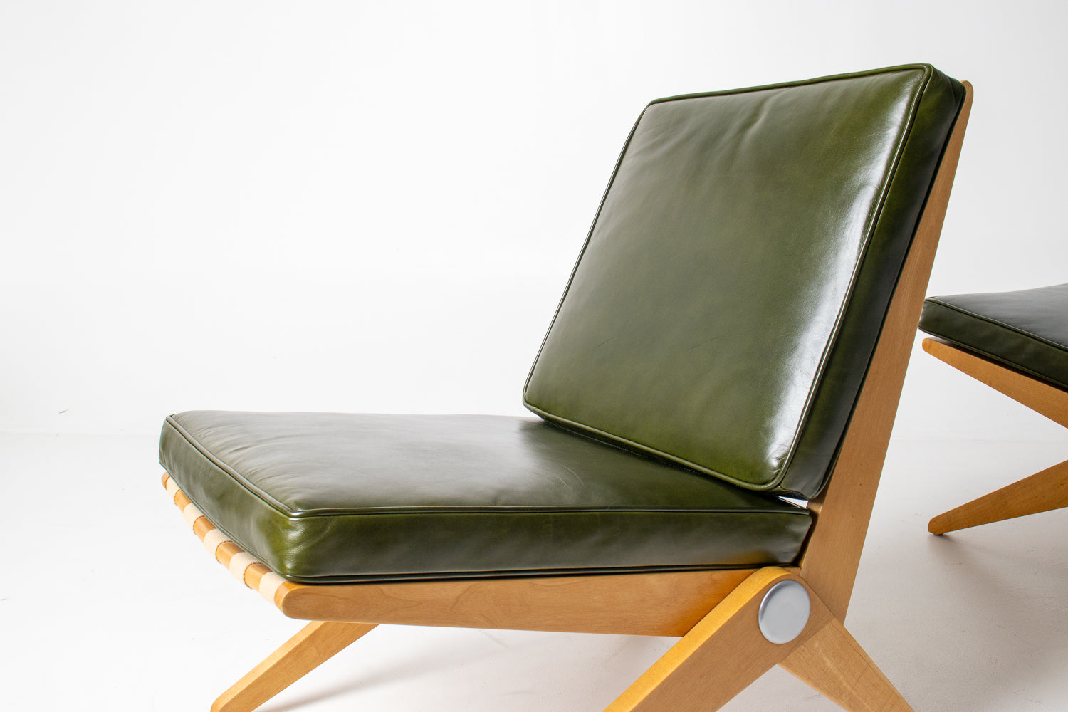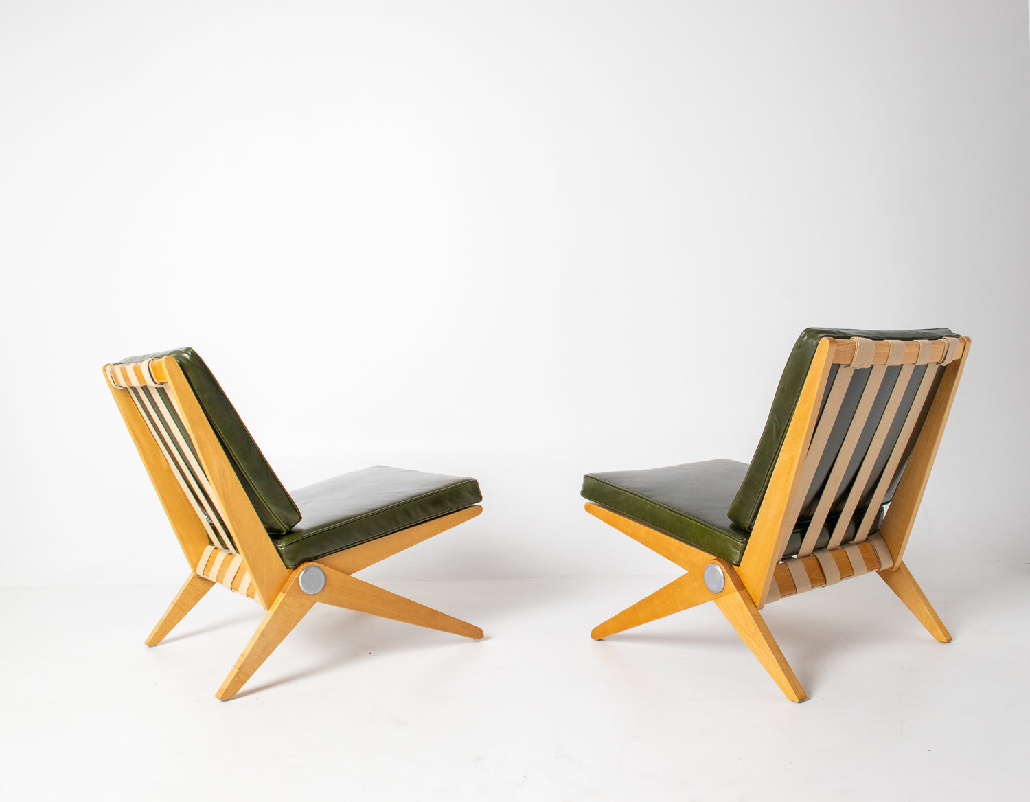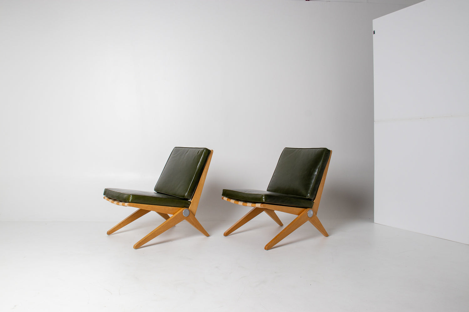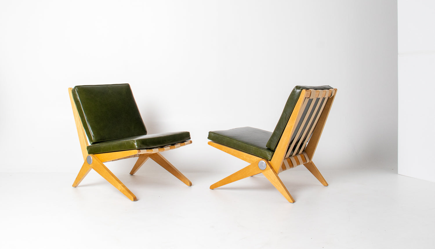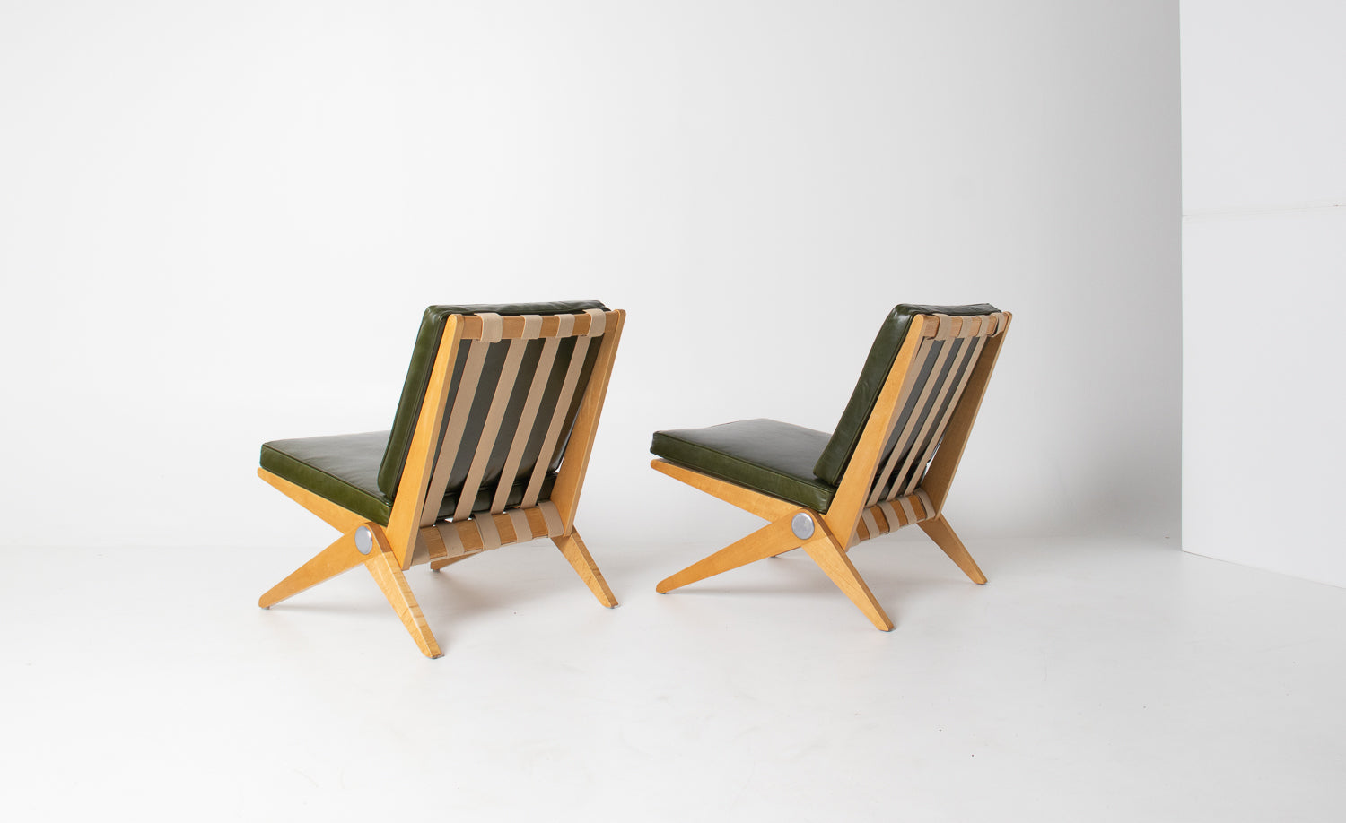 A spectacular and authentic pair of “Scissors” chairs designed by Pierre Jeanneret in 1948 and manufactured by Knoll. This iconic design — celebrated for its striking angular profile and refined simplicity — beautifully captures the sculptural elegance of post-war modernism.