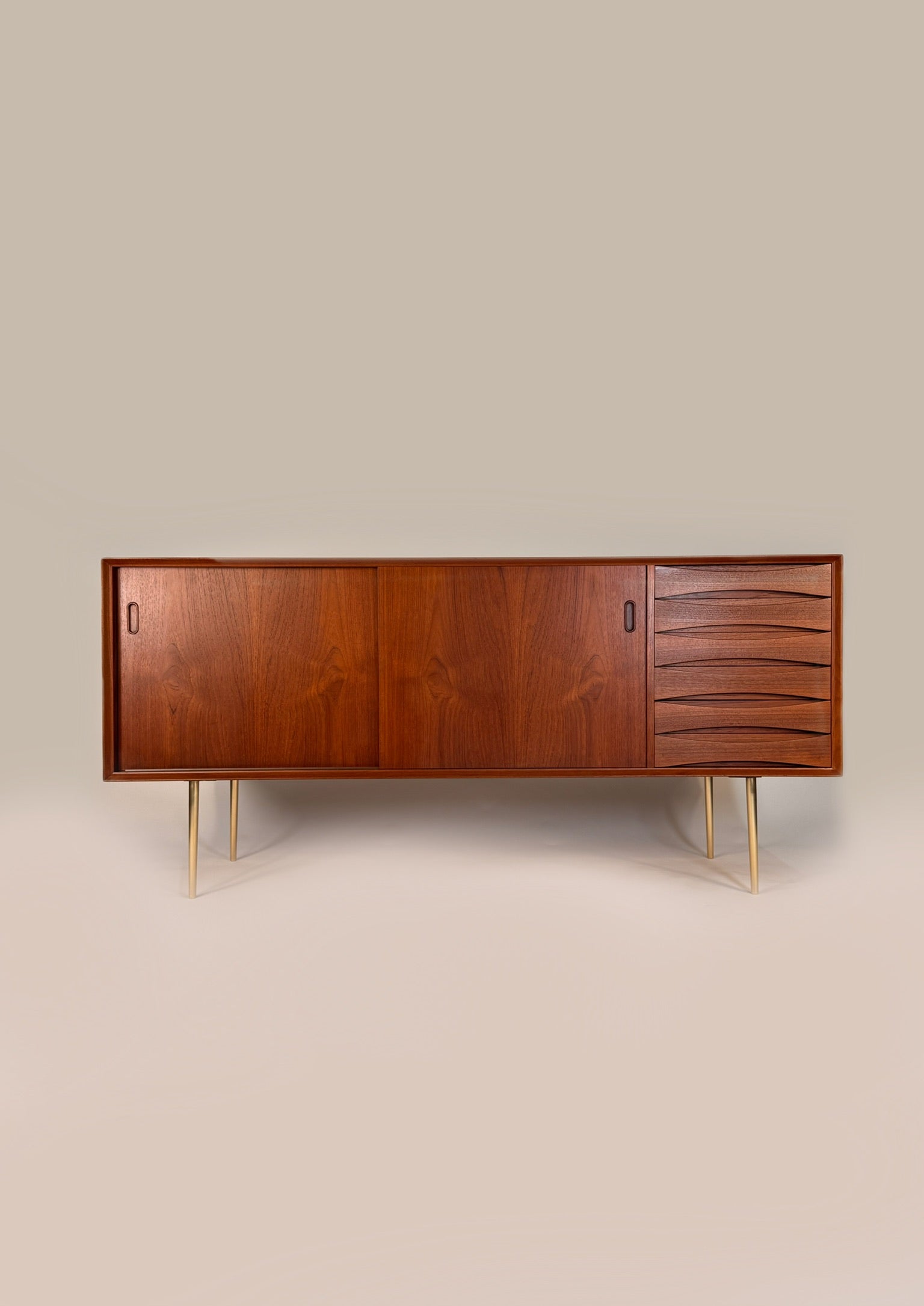 Arne Vodder Model 29 Teak Credenza with Solid Brass Legs – Danish Mid‑Century Modern Sideboard