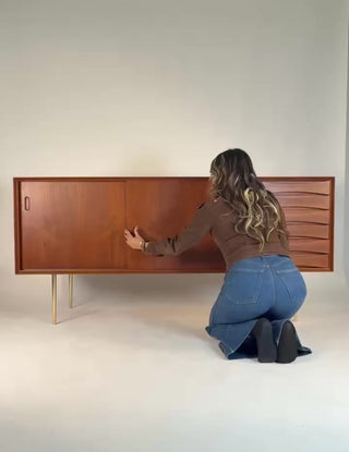 A highly sought‑after example of Danish modern design, this teak credenza is ideal for collectors, interior designers, and anyone looking for an iconic piece of Scandinavian craftsmanship. Its timeless beauty and quality construction ensure it will be cherished for generations to come.