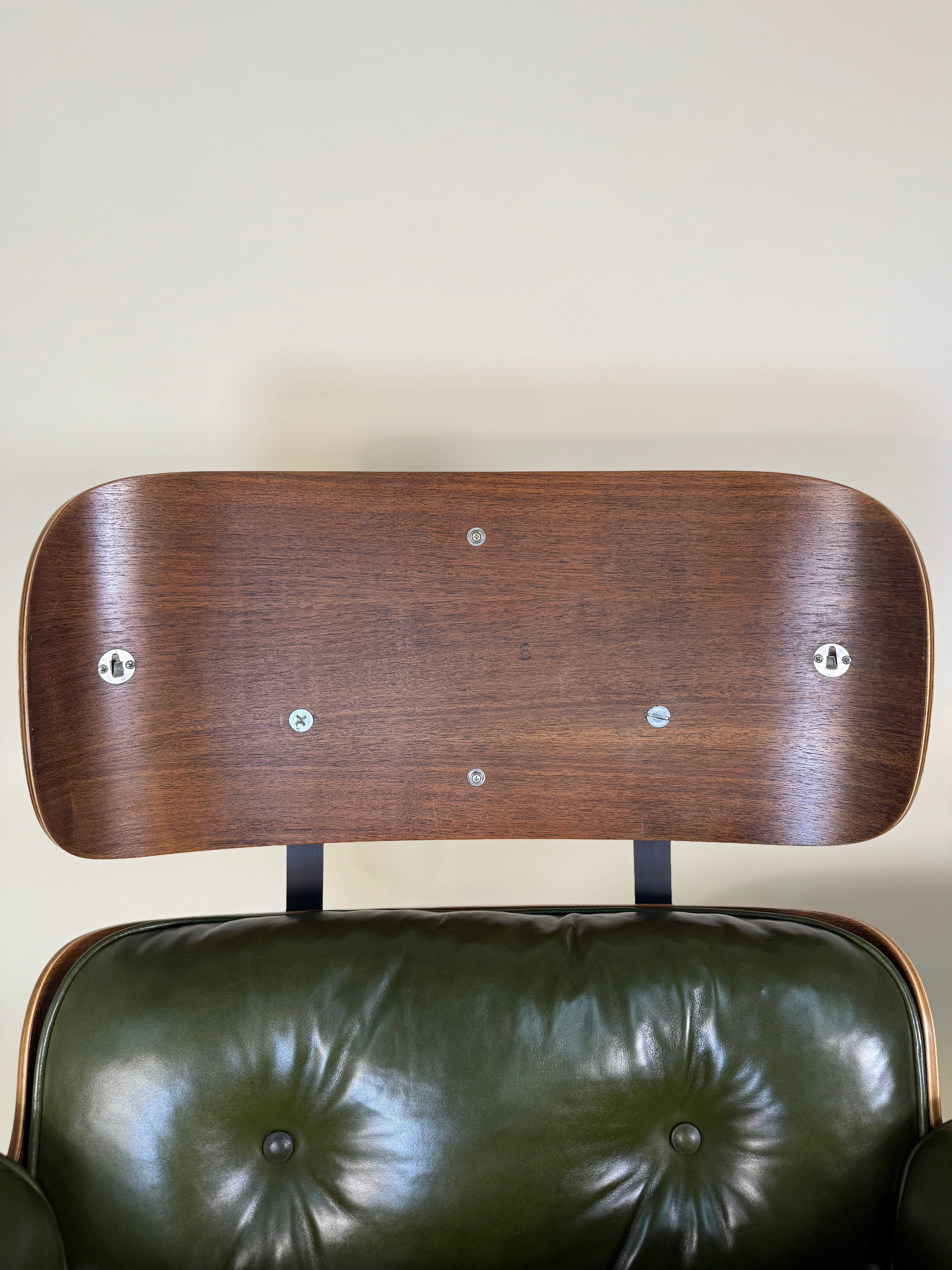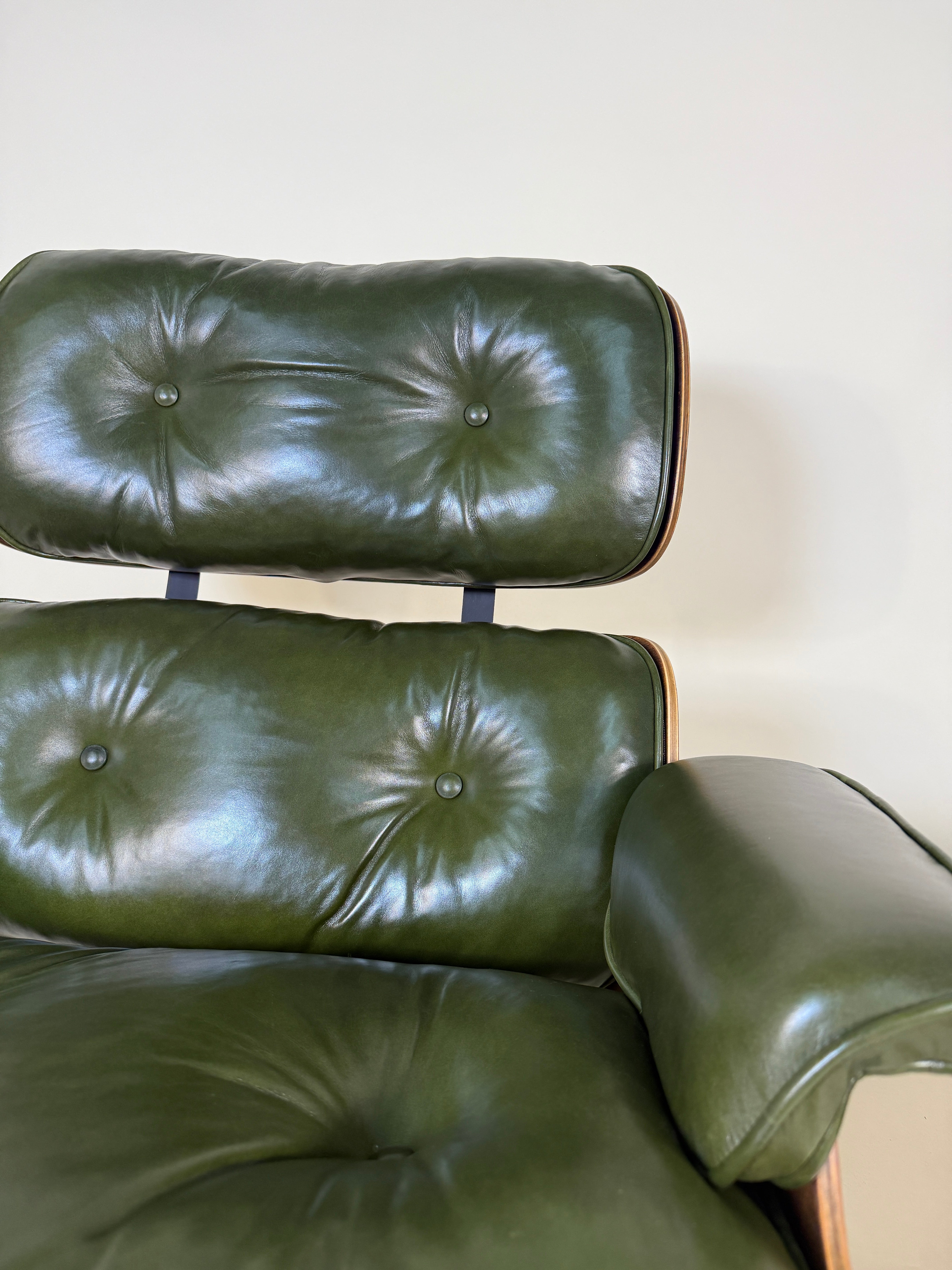 Designed by Charles and Ray Eames for Herman Miller and introduced in 1956, the Lounge Chair and Ottoman quickly became a symbol of luxury, innovation, and timeless modernism. This third-generation version retains the integrity of the classic form while showcasing details specific to early 1970s production the coveted (almost always) deep rosewood grain, now no longer available due to export restrictions on Brazilian rosewood.