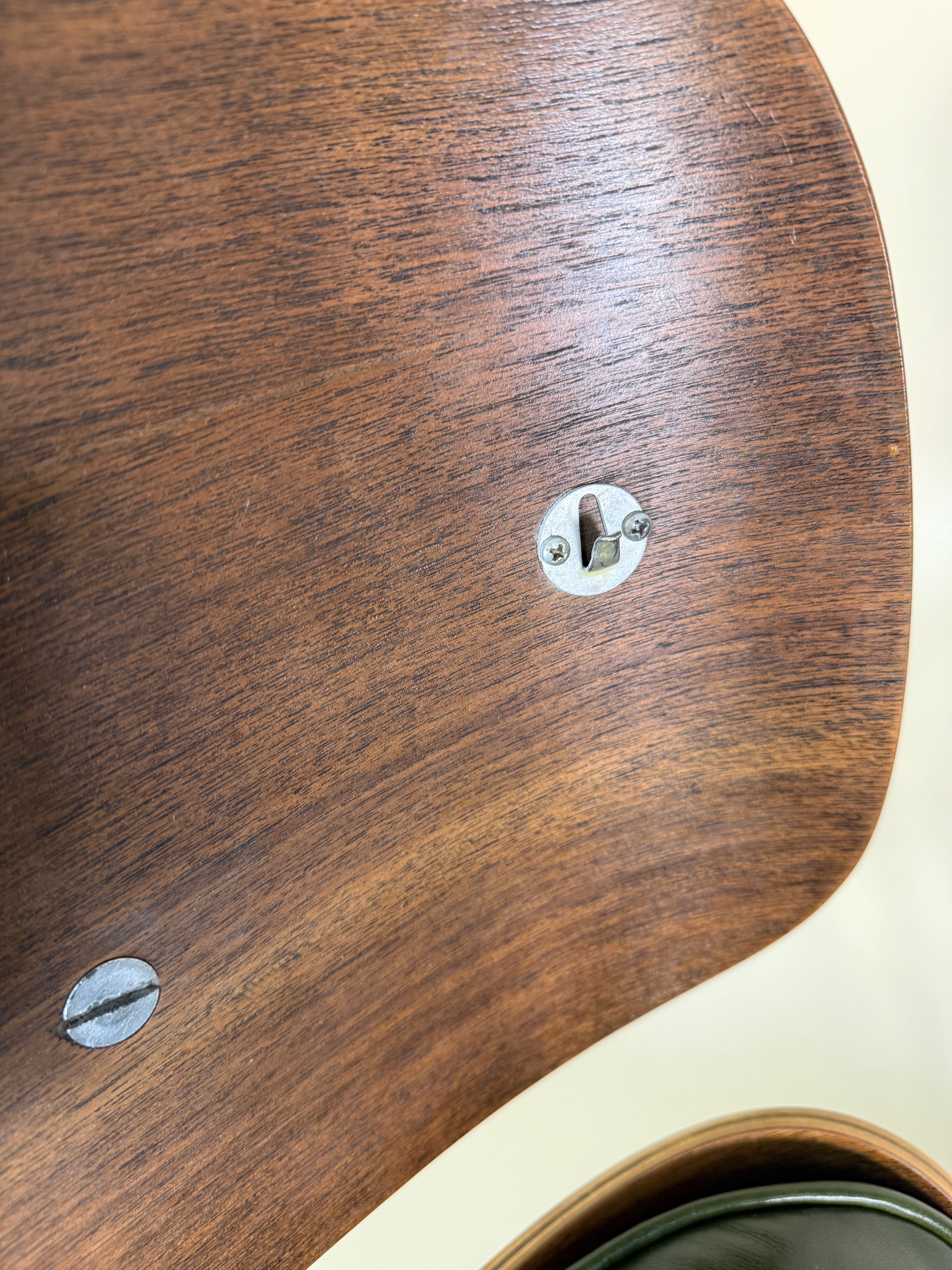 - Rich, highly figured Walnut veneer shells- this chair has a really unique Walnut grain.
