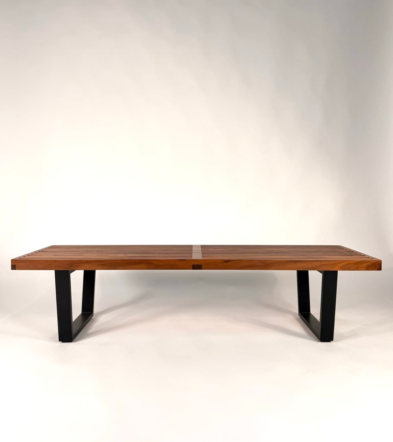 George Nelson Platform Bench in Walnut and Black Lacquered Base – Mid‑Century Modern Design