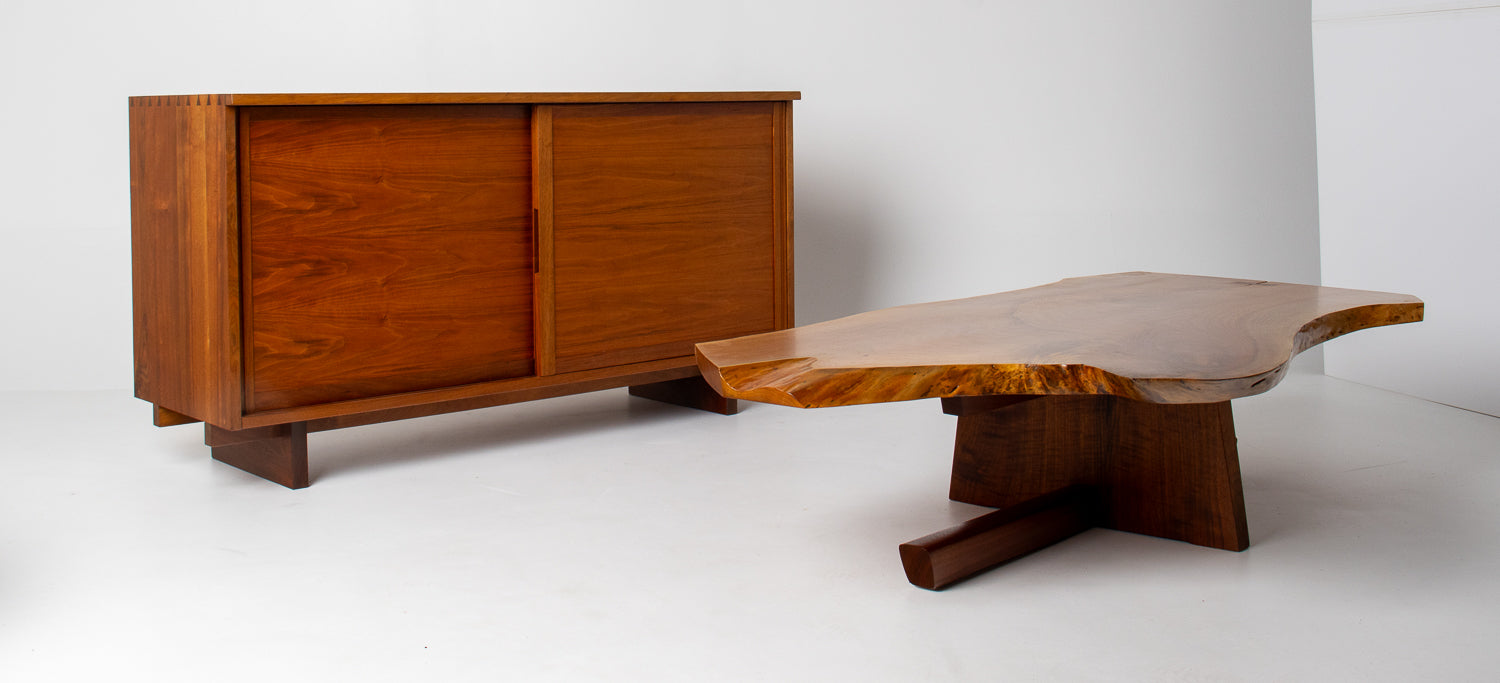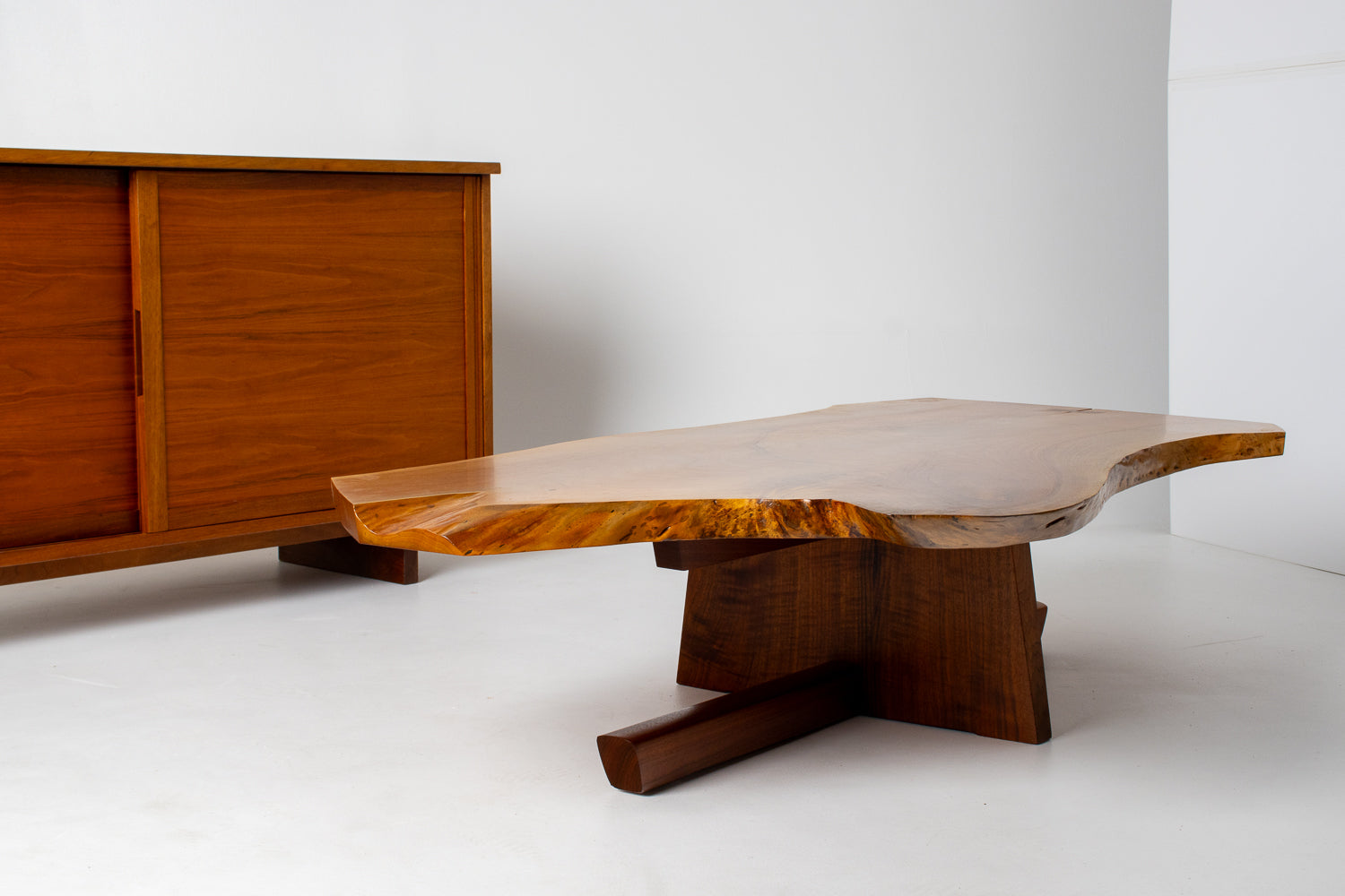 This exceptional Mira Nakashima “Minguren I” Coffee Table represents the enduring legacy of Nakashima Studio in New Hope, Pennsylvania — a direct continuation of the celebrated Studio Craft tradition founded by George Nakashima and carried forward by his daughter, master woodworker Mira Nakashima (American, b. 1942).
