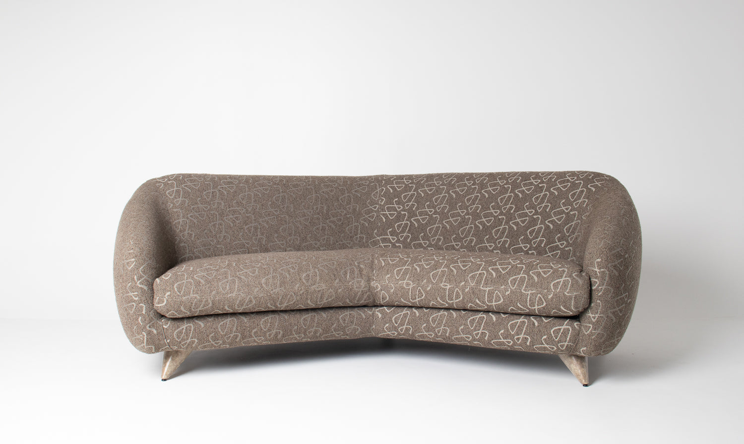 The current upholstery is a textured woven fabric with a playful, abstract motif that complements the sofa’s curves. As with all Kagan pieces at Hobbs Modern, new custom fabric is available and can be selected by the client. Whether you envision a rich mohair, a subtle boucle, or a bold contemporary textile, the Tangent Sofa adapts beautifully and becomes a bespoke centerpiece tailored to your space.