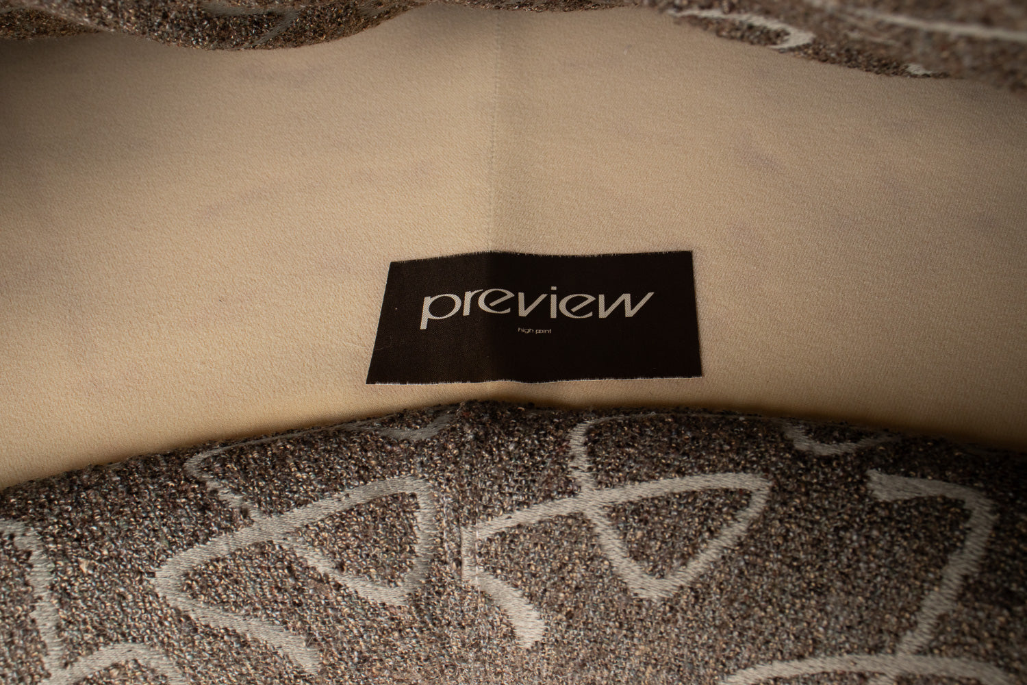 This example features the original Preview label and retains its iconic biomorphic form: a soft, continuous sweep of upholstery resting on Kagan’s signature tapered cone legs. The wraparound shape cradles the sitter while opening up a room with elegant movement. Seen from any angle, the sofa feels like a living sculpture—inviting, organic, unmistakably Kagan.
