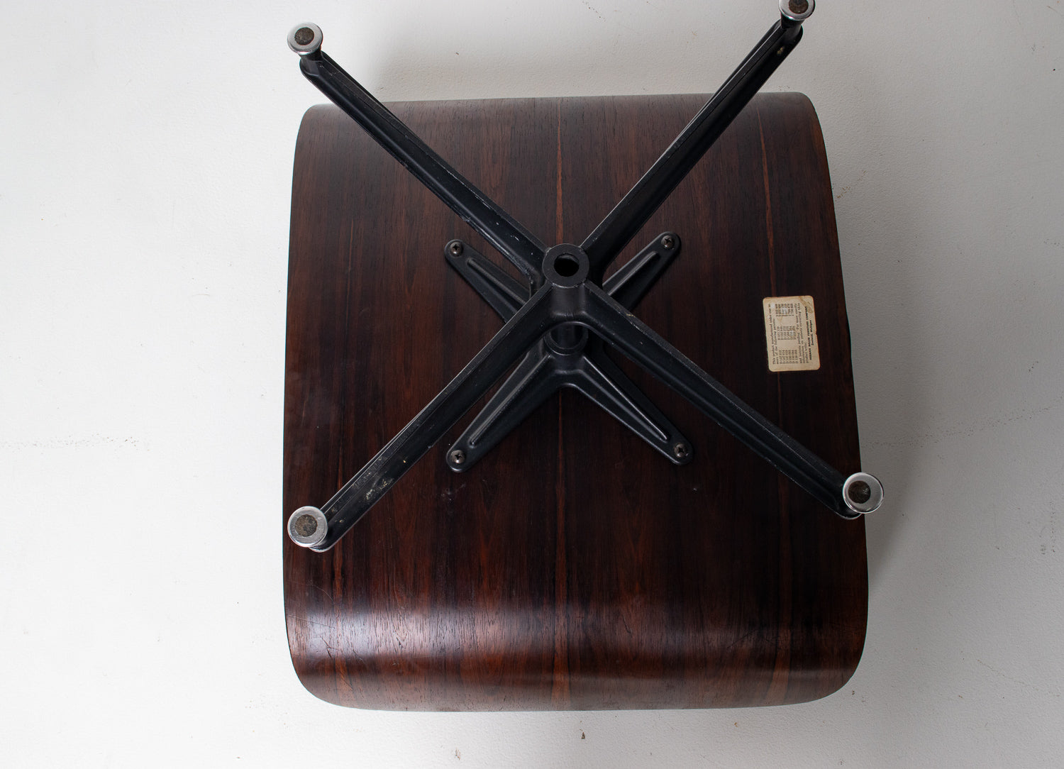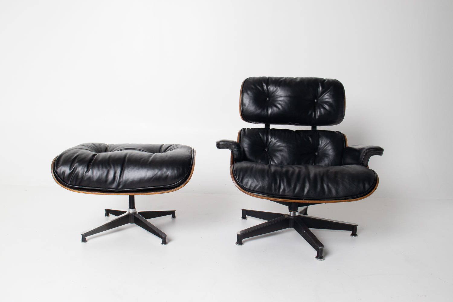 Early 1956 Eames Lounge Chair and Ottoman in Rosewood and Black Italian Leather