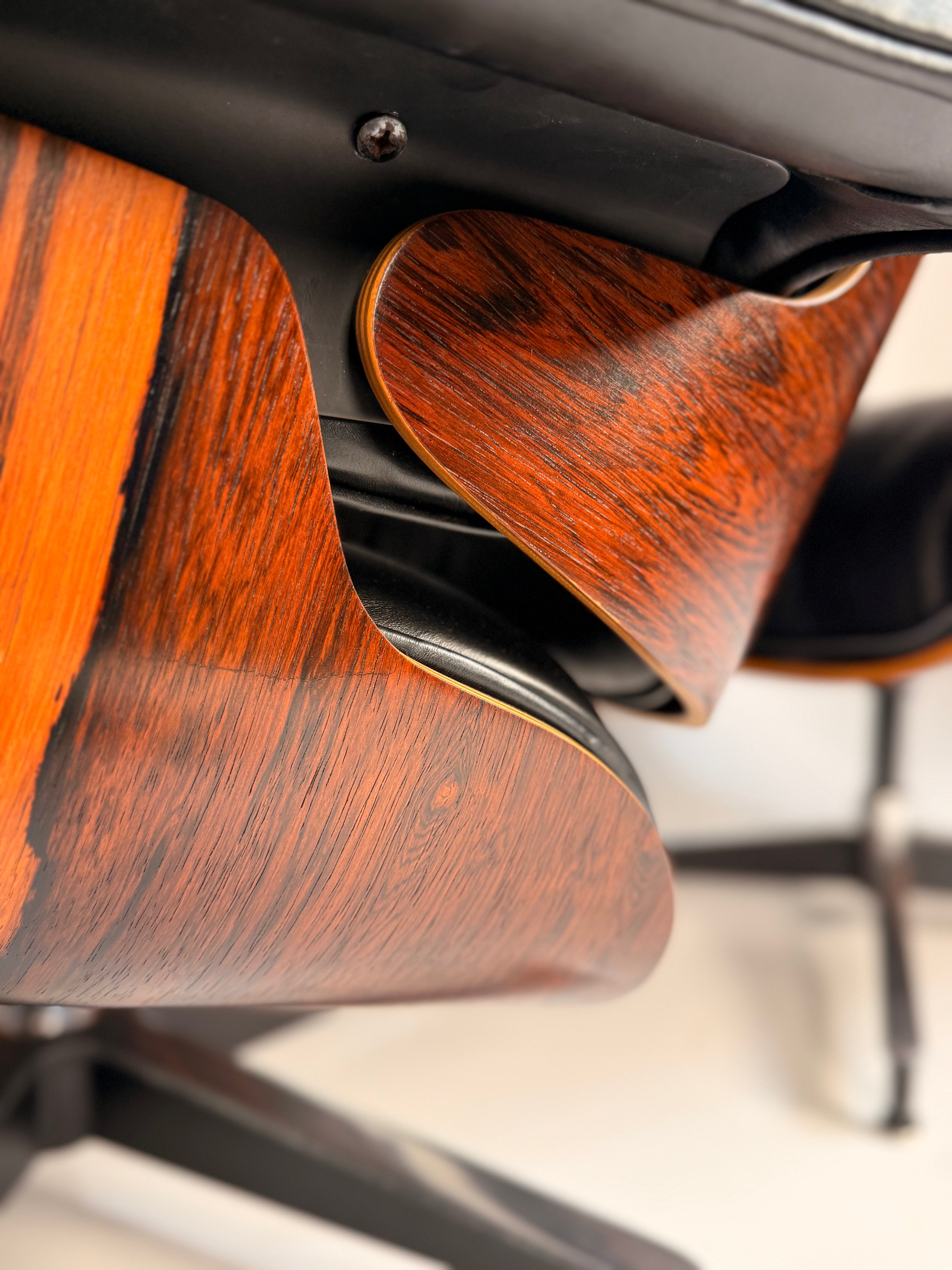 Rich, highly figuredย rosewood veneer shells- this chair has a really unique rosewood grain.ย