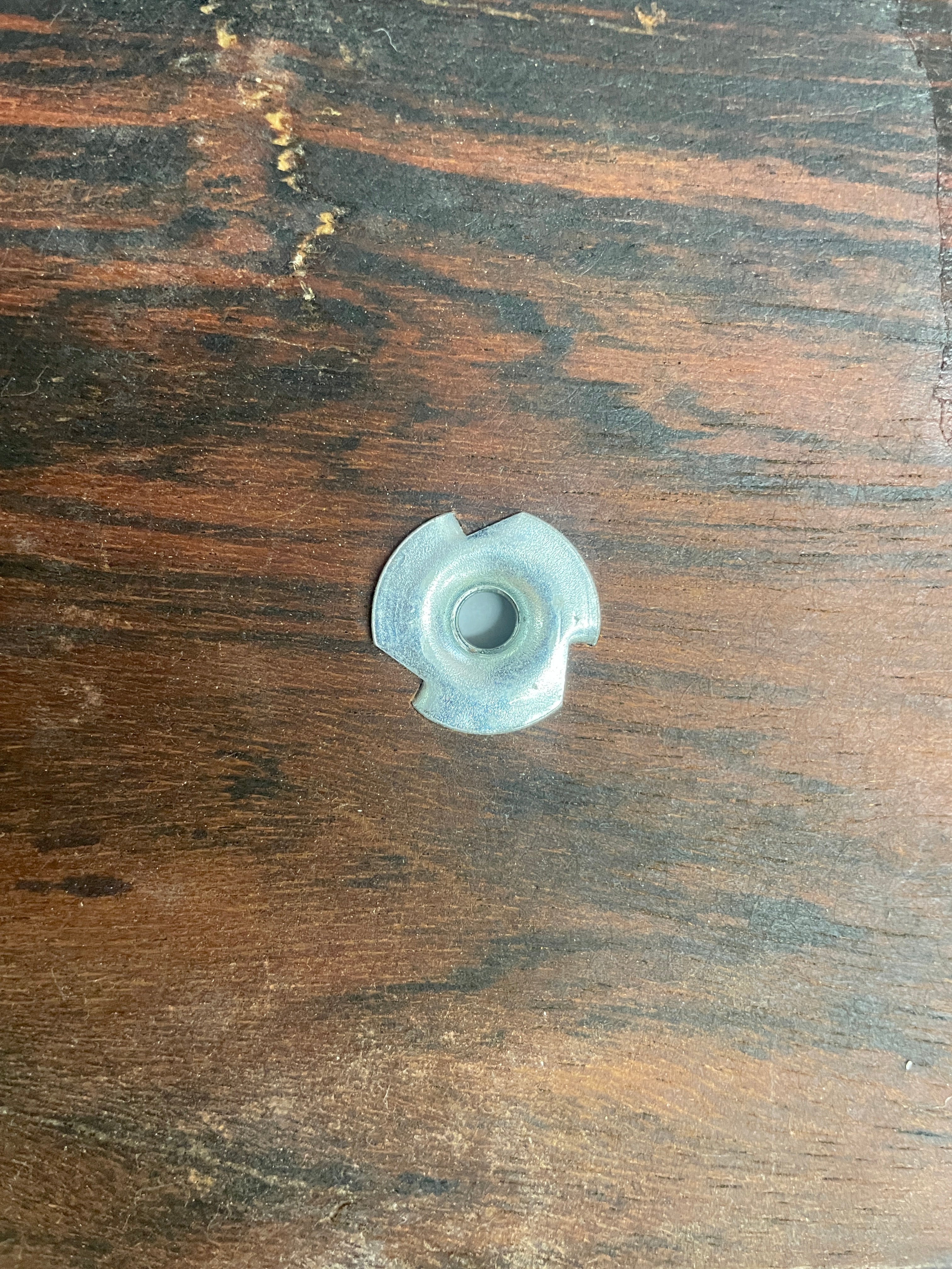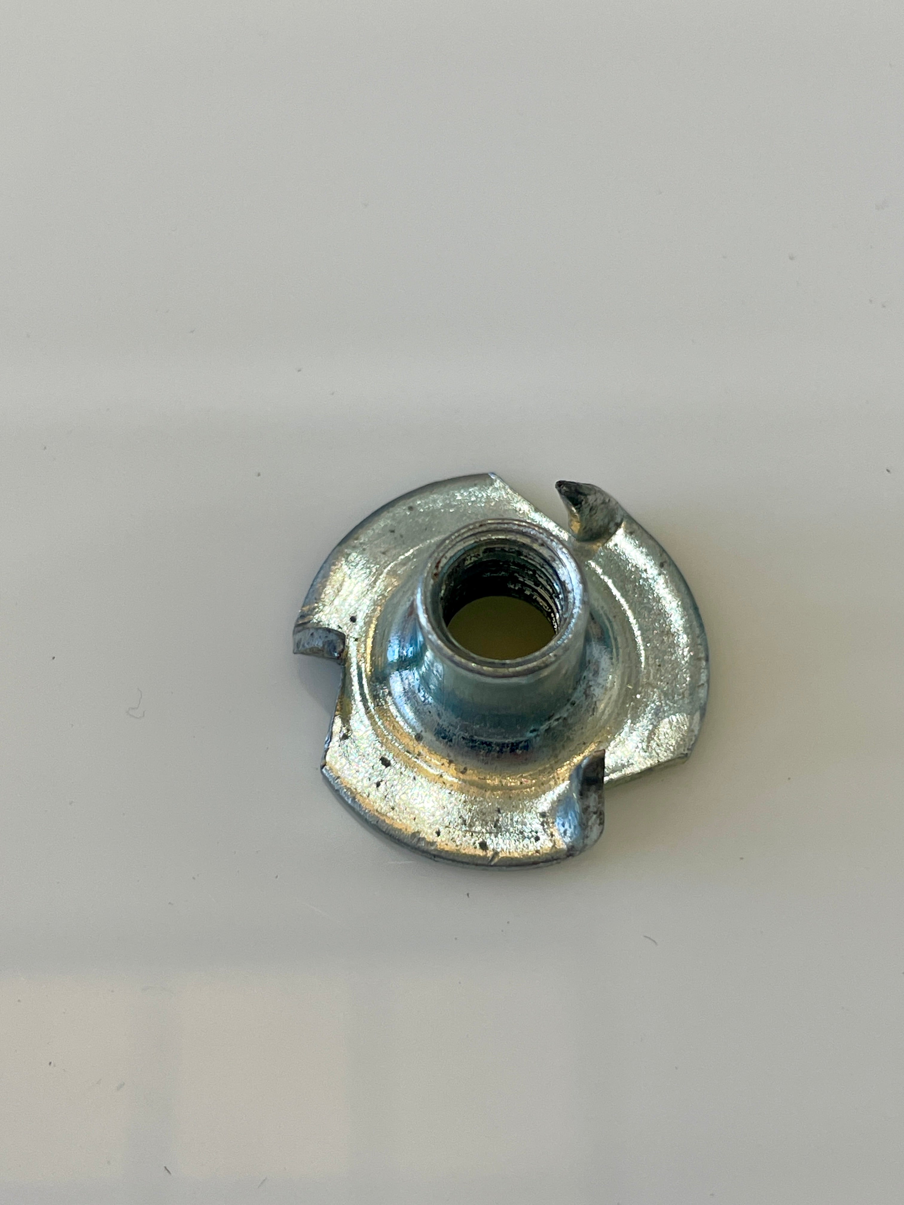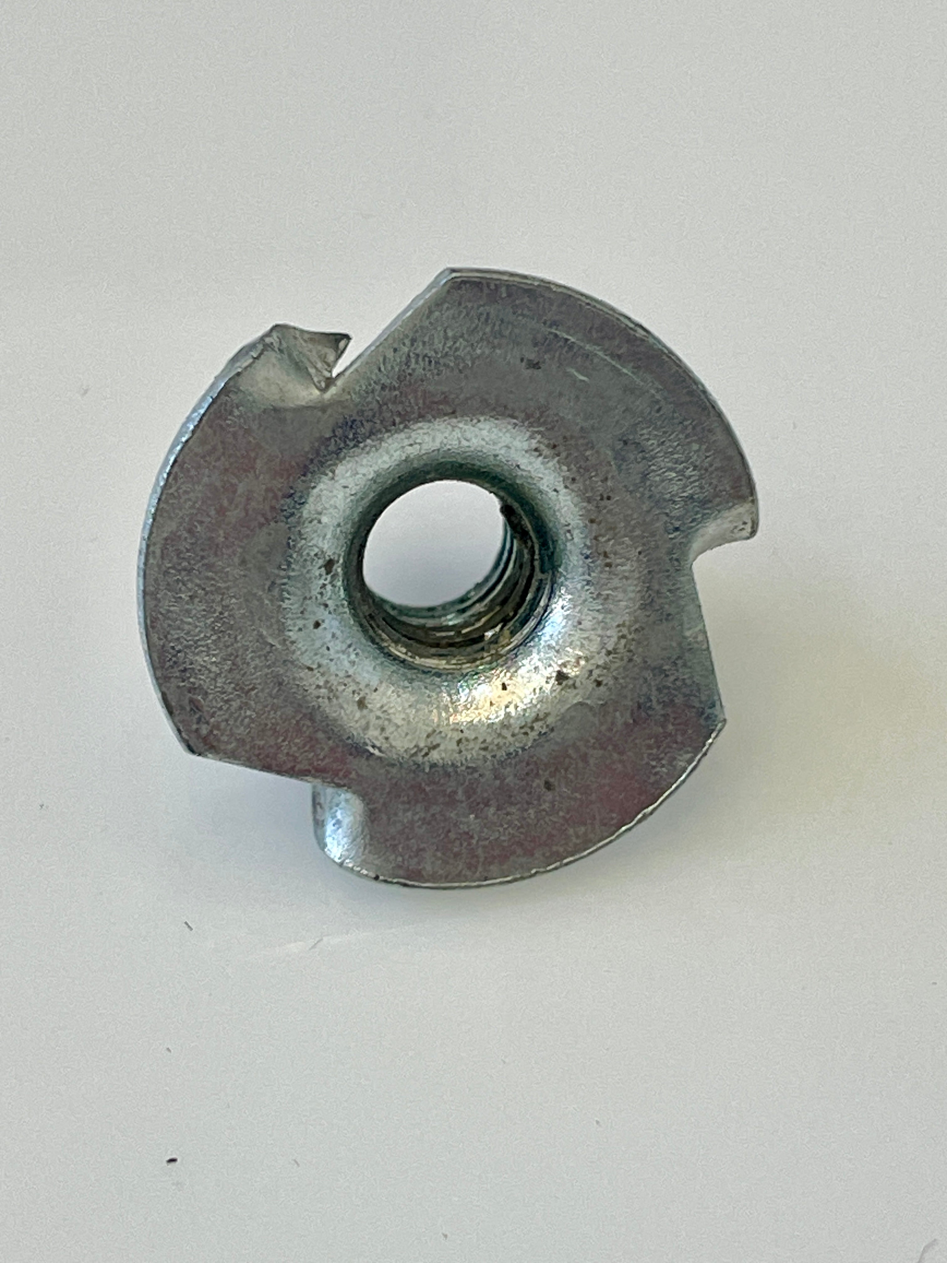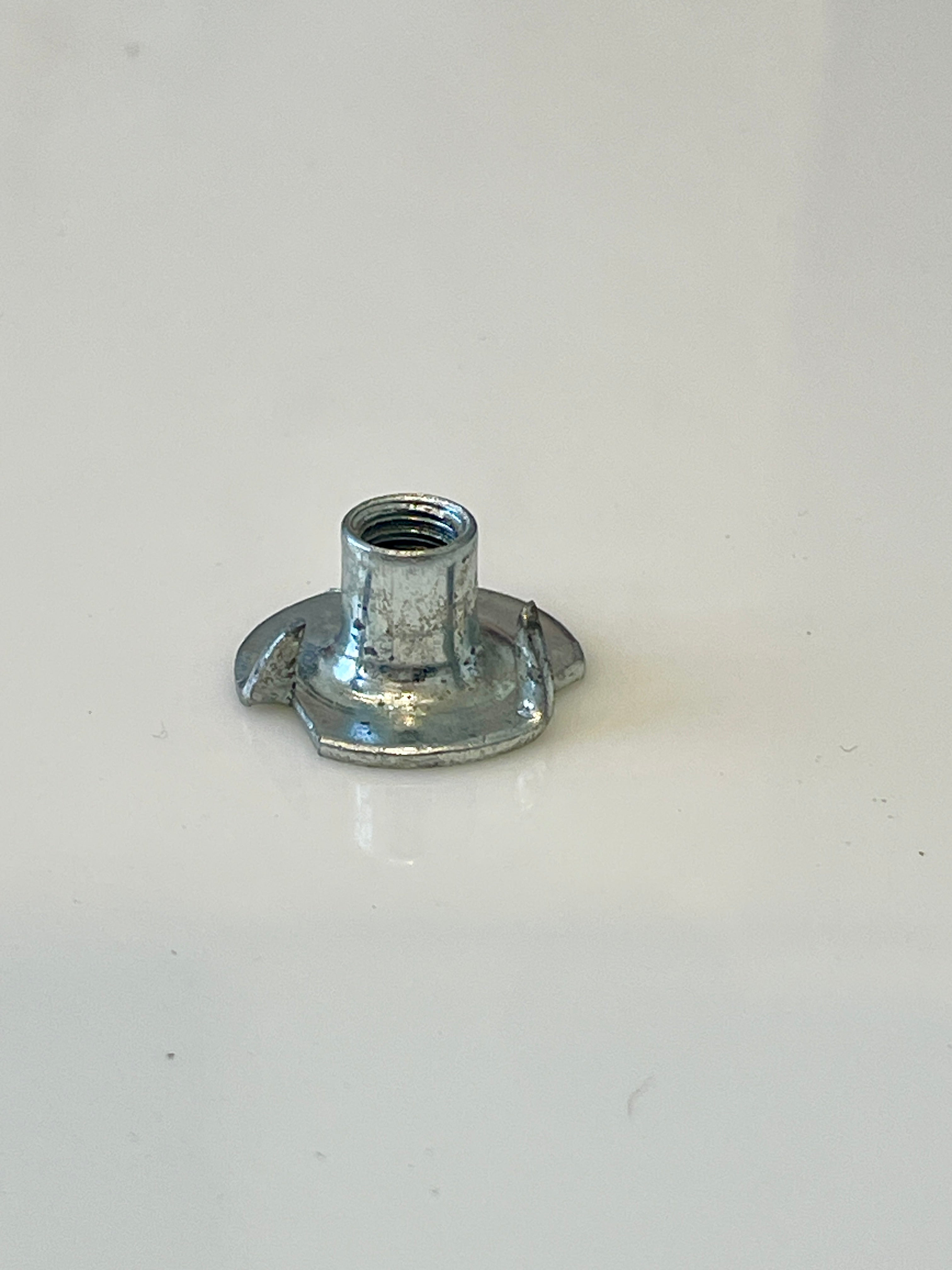 Like the original T-nut screw for Eames Lounge chair seat or ottoman panel. These go into the wood on the inside of the shell and as you tighten the base screw to the ottoman or chair they drive deeper into the wood securing the metal base to the wood chair shell. These are identical to the original hardware from Herman Miller.Β
