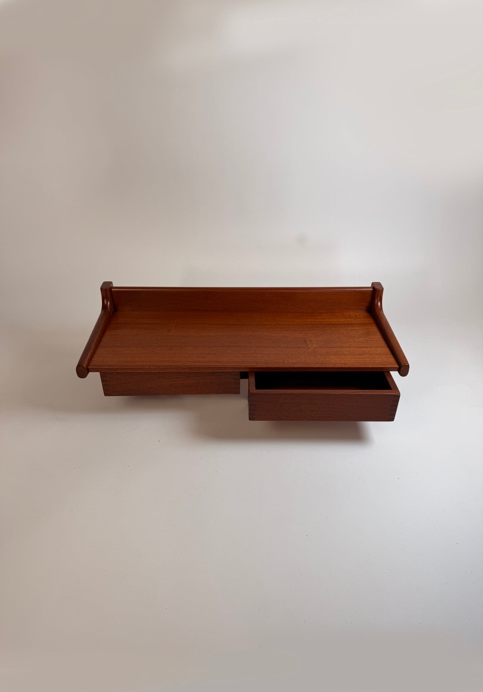 Floating Shelf by Børge Mogensen — Circa 1960s. A refined example of Mogensen’s understated Danish modern sensibility. Crafted in warm solid teak, the shelf appears to “float” on the wall, offering both functional storage and an elegant architectural element. The clean lines and meticulous joinery reflect Børge Mogensen’s philosophy of honest materials and timeless utility. Restored to excellent vintage condition.