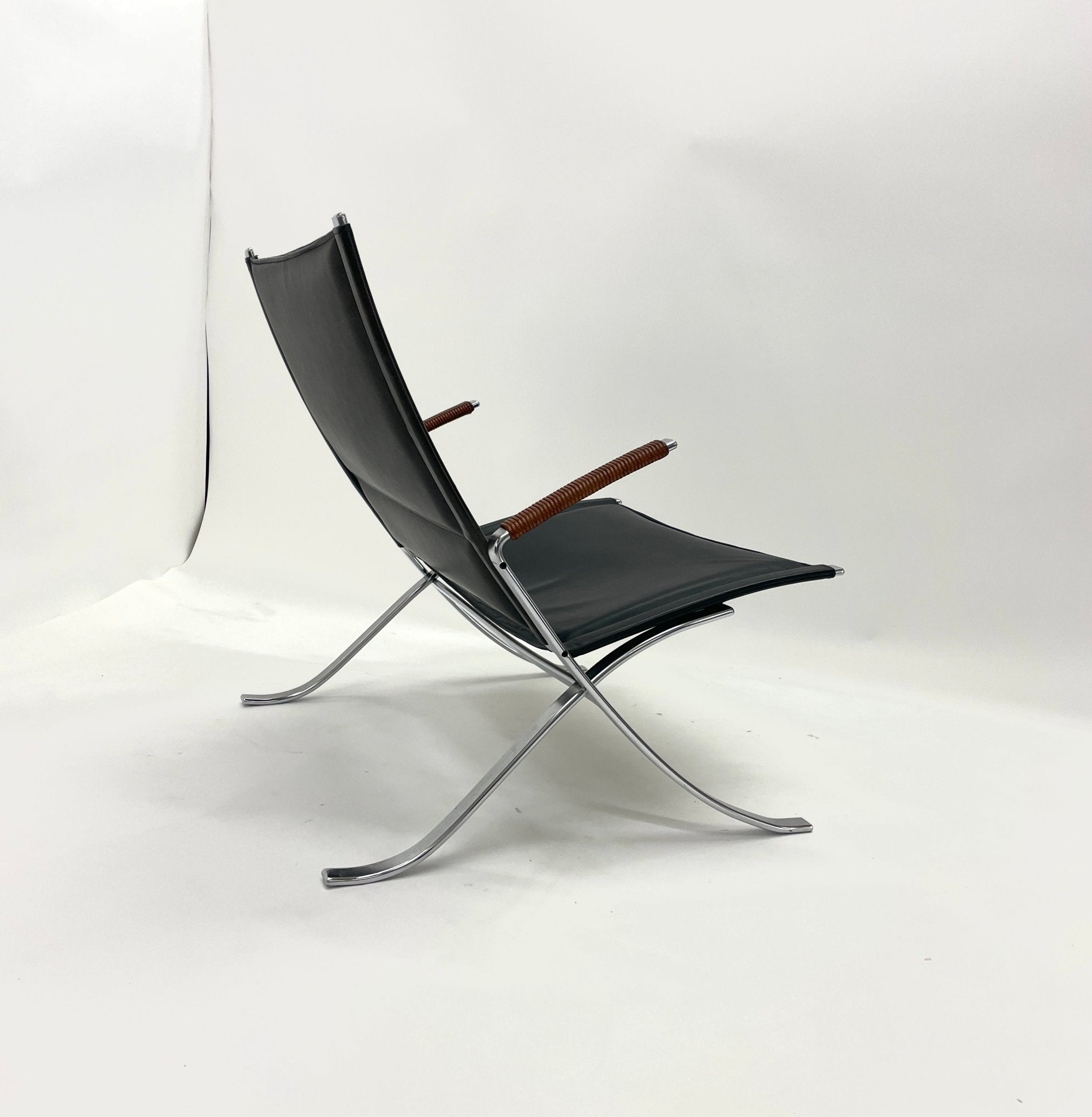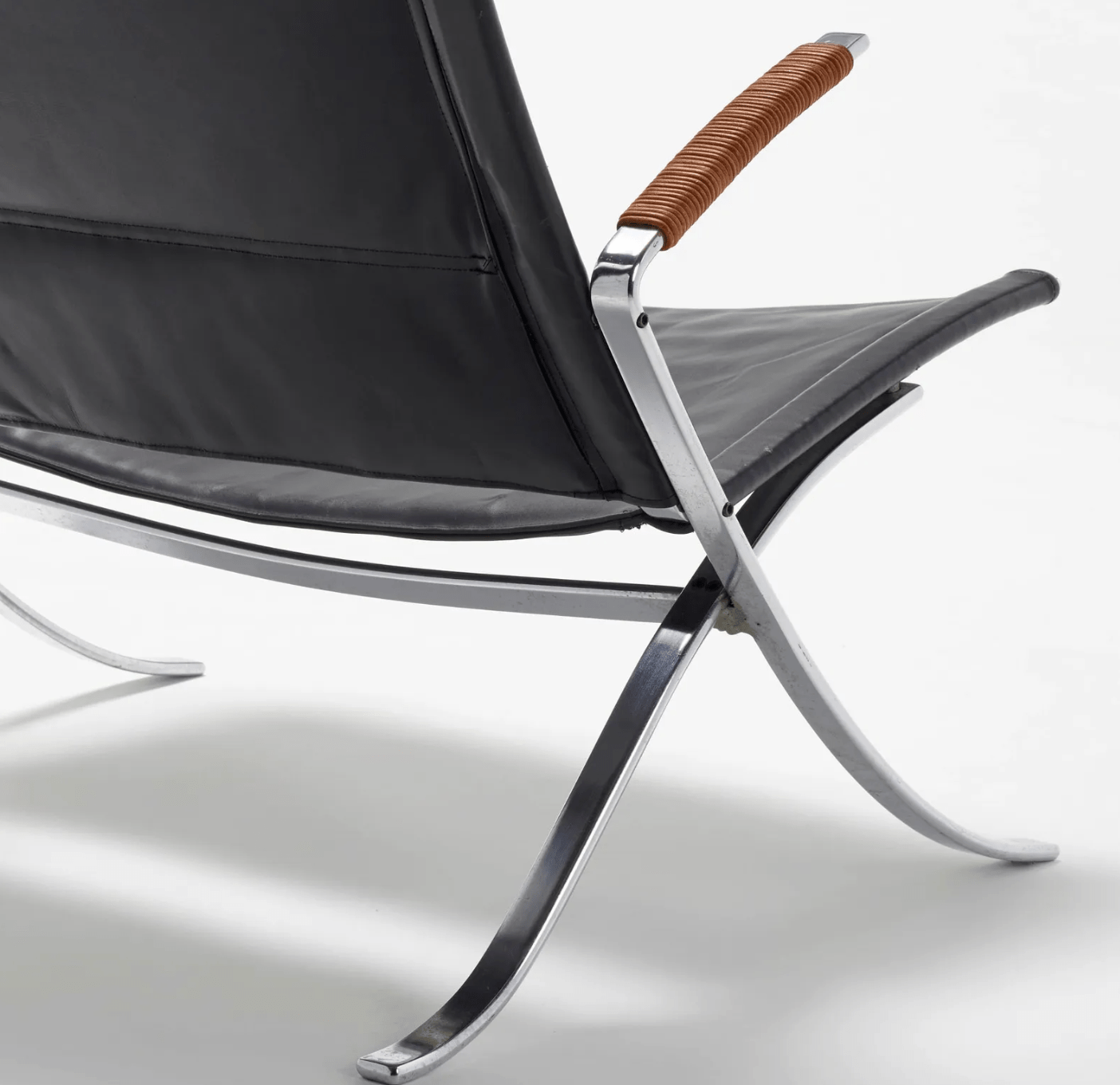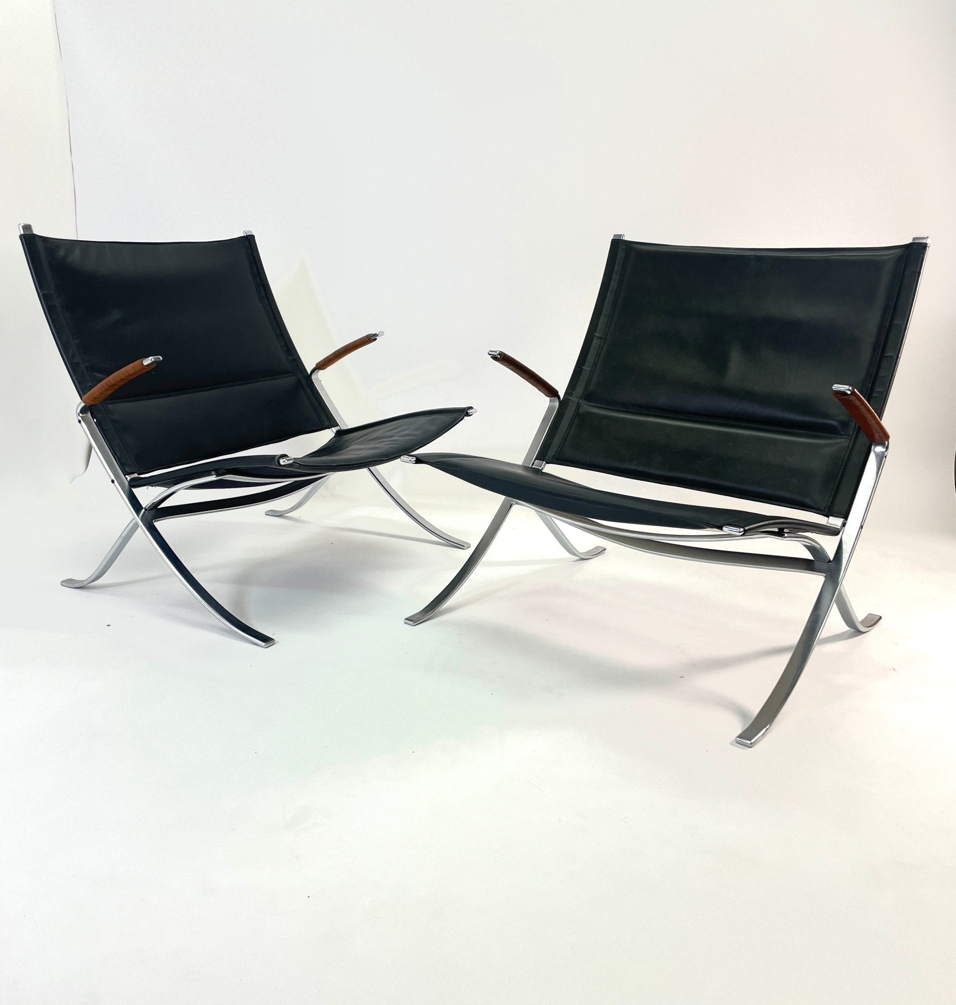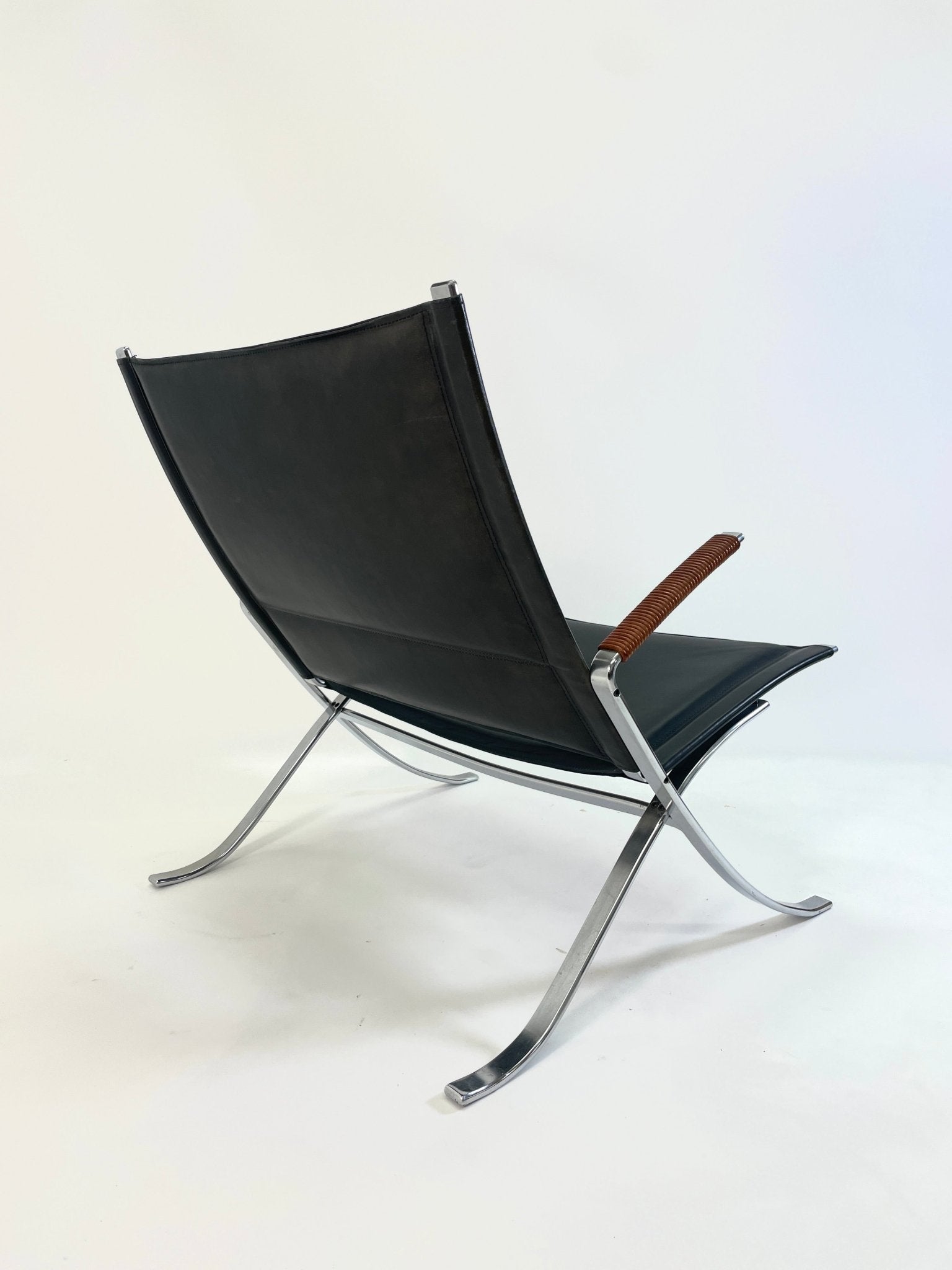 The FK 82 X-Chair was designed by Preben Fabricius & Jรธrgen Kastholm in 1967 and original produced by Kill International in Germany. Although the two designers have individually created some interesting pieces, it is in pair that they have achieved their greatest success. During the eight years of partnership they managed to create a wide selection of very high quality designs. The results were often minimalistic and functional designs in steel, glass and leather.ย
