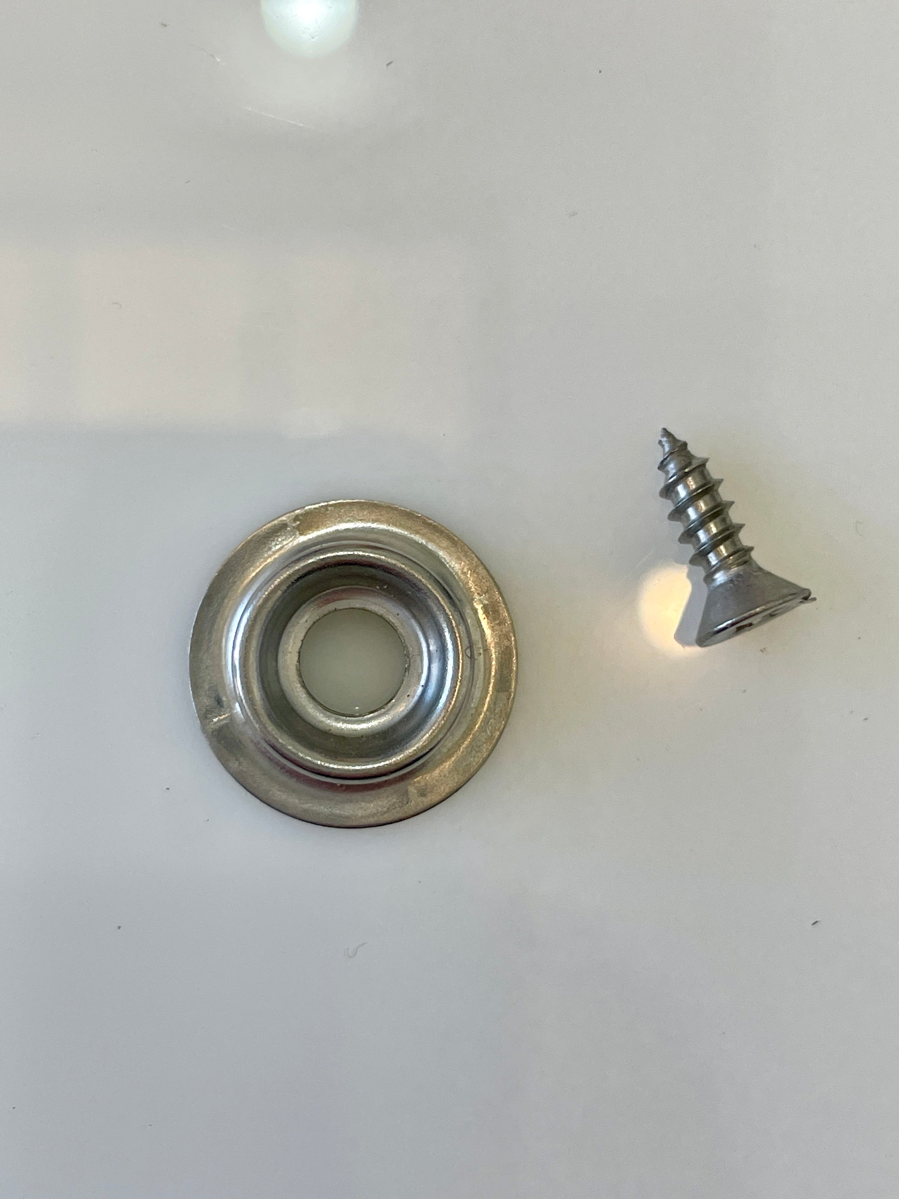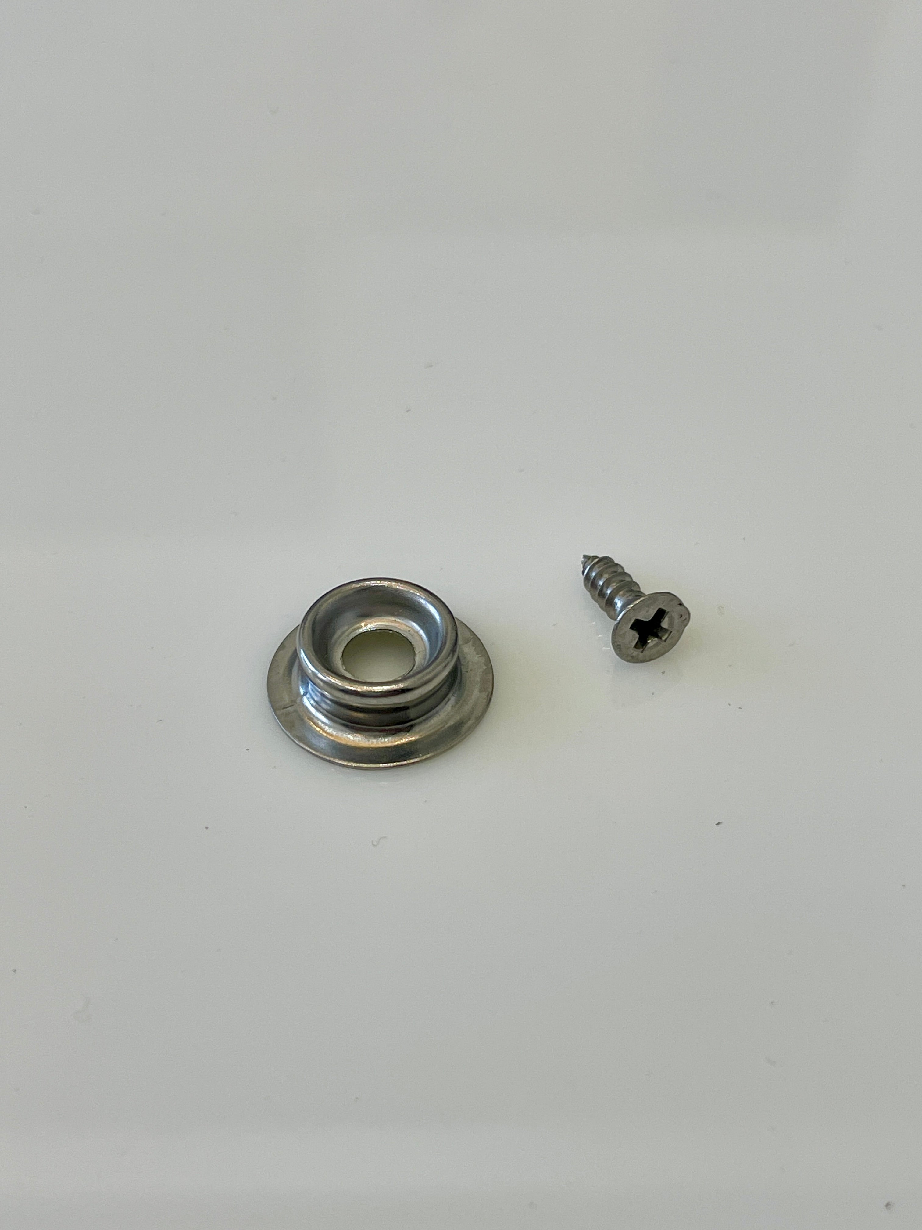Eames Lounge Upholstery Snap Base. A replacement lower snap and screw for Eames Lounge and Ottoman upholstery. This has a pointy wood screw for screwing directly into the wood panel. If your panels have a threaded insert beneath the snaps this will not work. Comes with screw and snap.