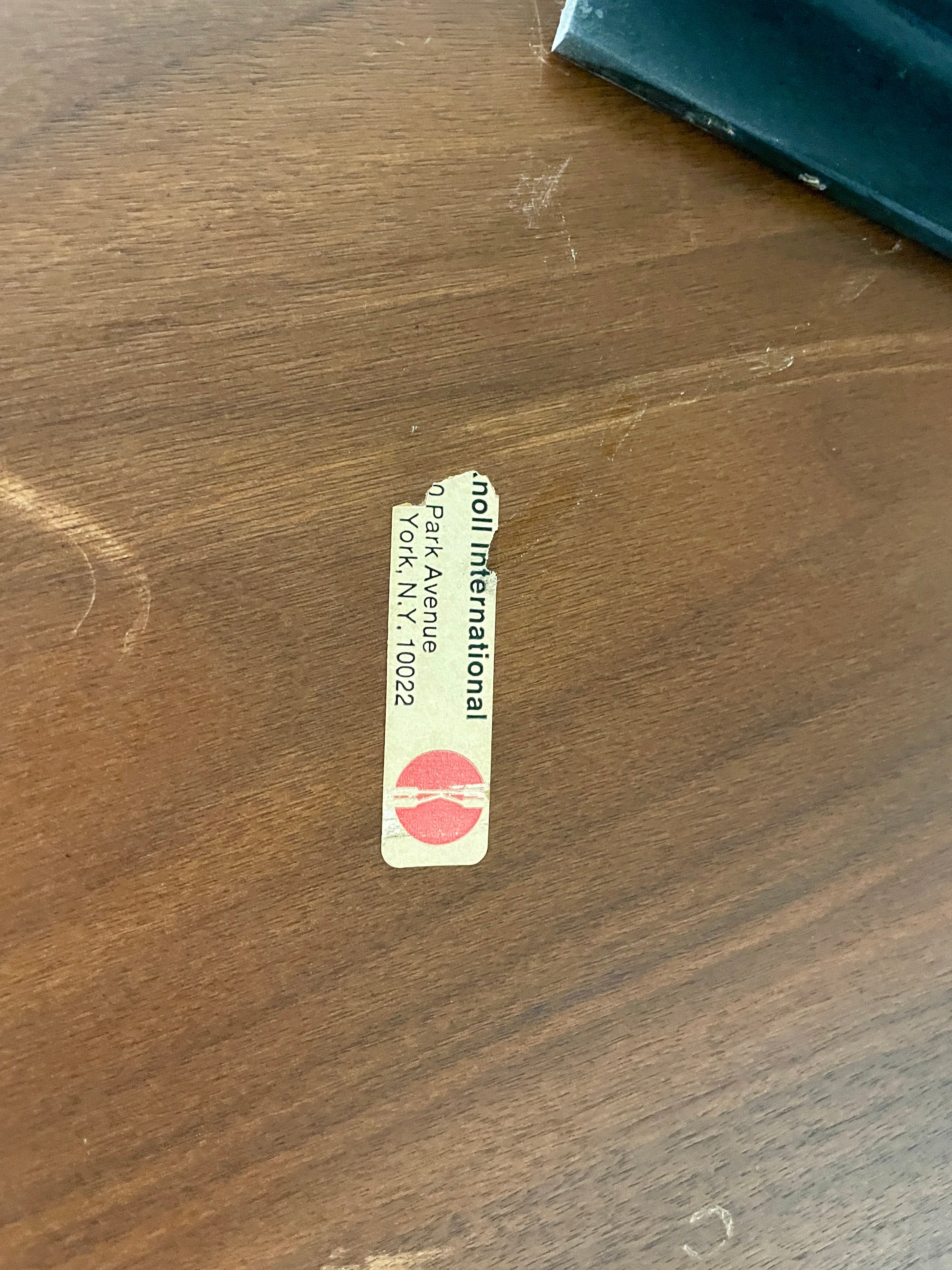 ย Incredibly durable construction that has been beautifully restored and is ready to complement your Mid-Century Modern home with a piece of furniture history. The top shows a beautiful "see through" finished walnut surface resulting in a harmonious decorative detail. Its versatility allows it to serve as a beautiful desk or conference table. Our professional craftsmen have fully restored and refinished this piece, making it the perfect addition exhibiting the elegance of classic Mid Century Modern design effortlessly.
